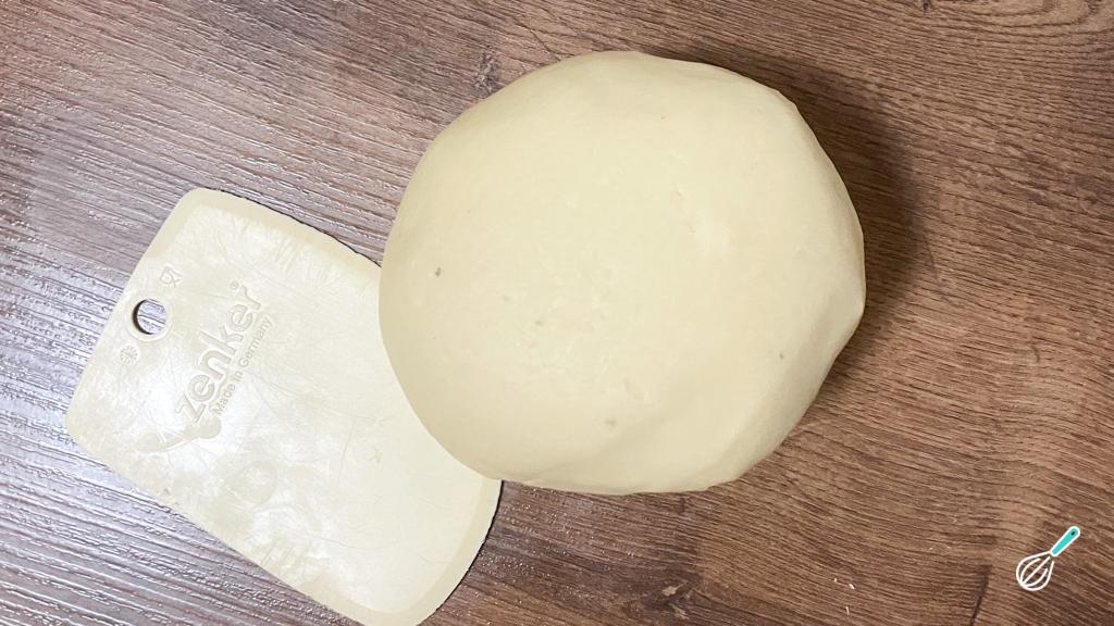 Transfira a massa para uma superfície limpa e mexa com uma colher de pau até a massa esfriar e ficar bem lisa.
