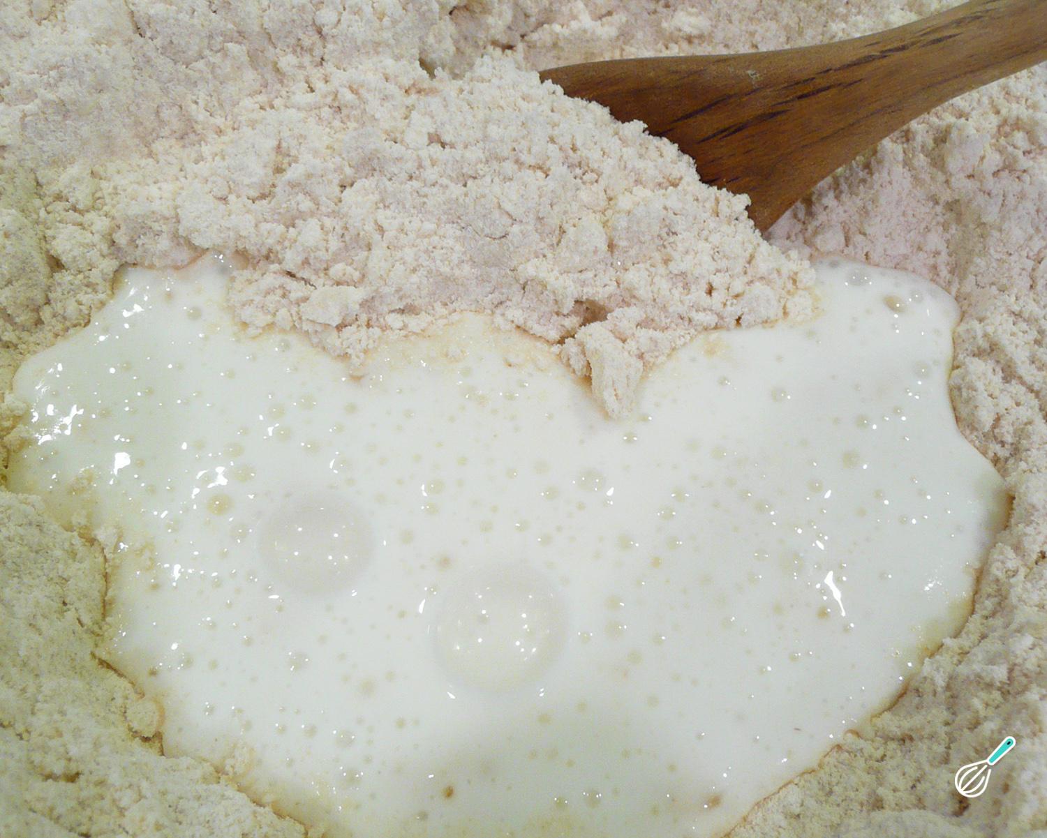 Comece por dissolver o fermento e o açúcar no leite morno. Reserve por 1-2 minutos ou até o fermento formar uma espuminha no leite, como na foto, isso significa que está ativado e pronto a usar!