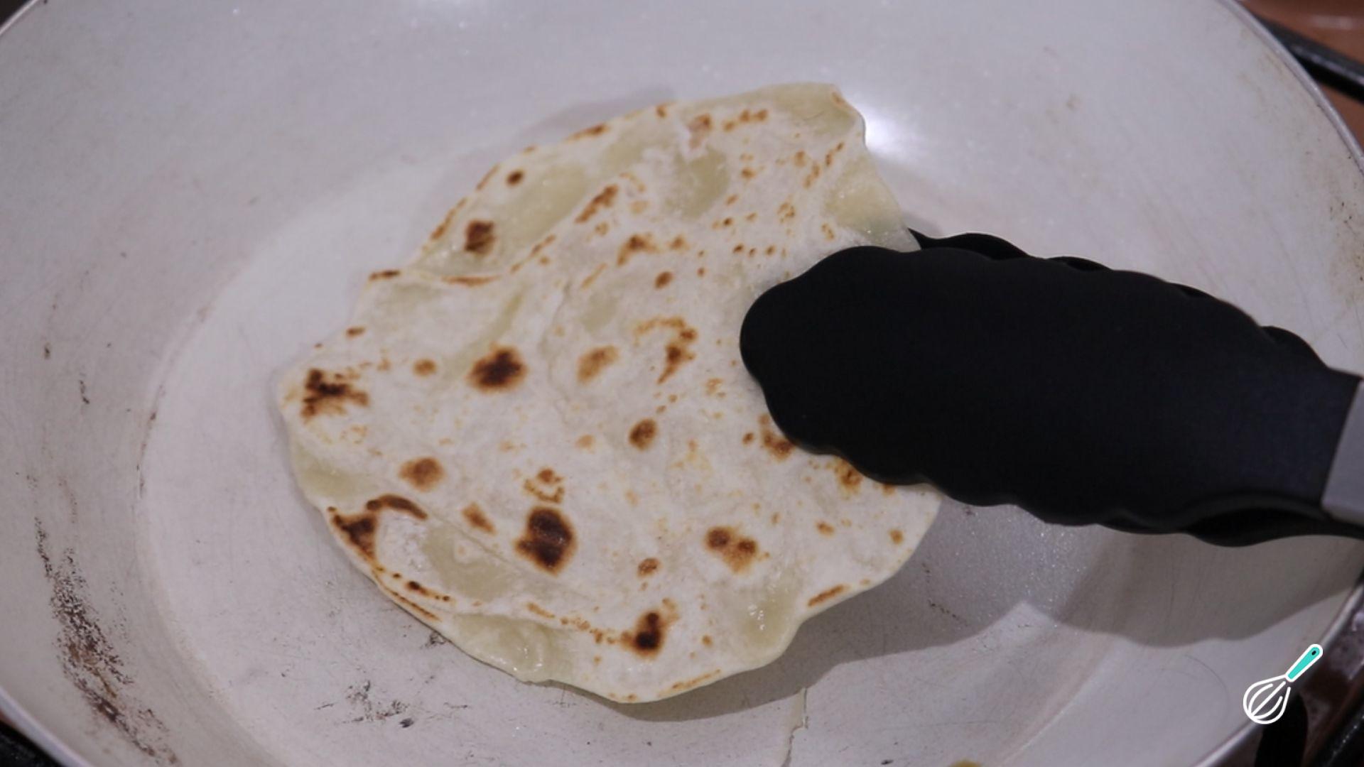 Leve uma frigideira ao fogo médio e coloque uma tortilla por vez – não precisa de óleo e nem azeite.