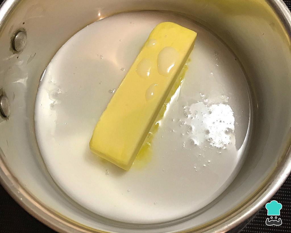 Enquanto o fermento está borbulhando aqueça numa panela o leite com a manteiga, só apenas até a manteiga derreter.