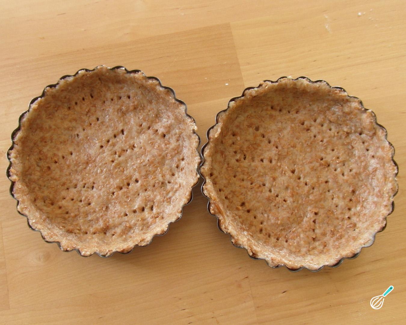 Dica: As quantidades indicadas rendem o suficiente para forrar o fundo e laterais de uma forma de torta de tamanho médio (22-24 cm) ou cerca de 10 forminhas de tartelete.