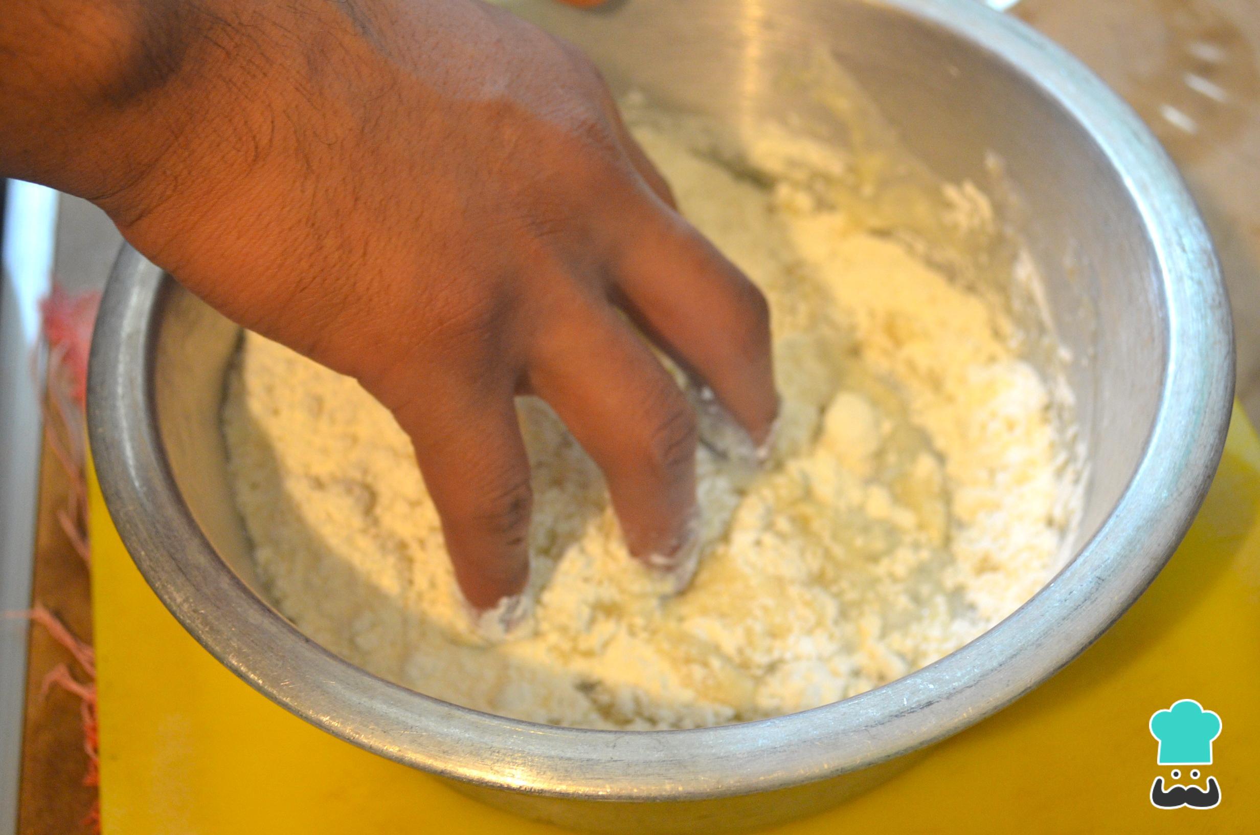 Dica: Não se preocupe se a massa não ficar homogênea, ela é assim mesmo. Se ela estiver quebrando muito e não conseguir modelar em forma de bola, coloque um pouco mais de água.