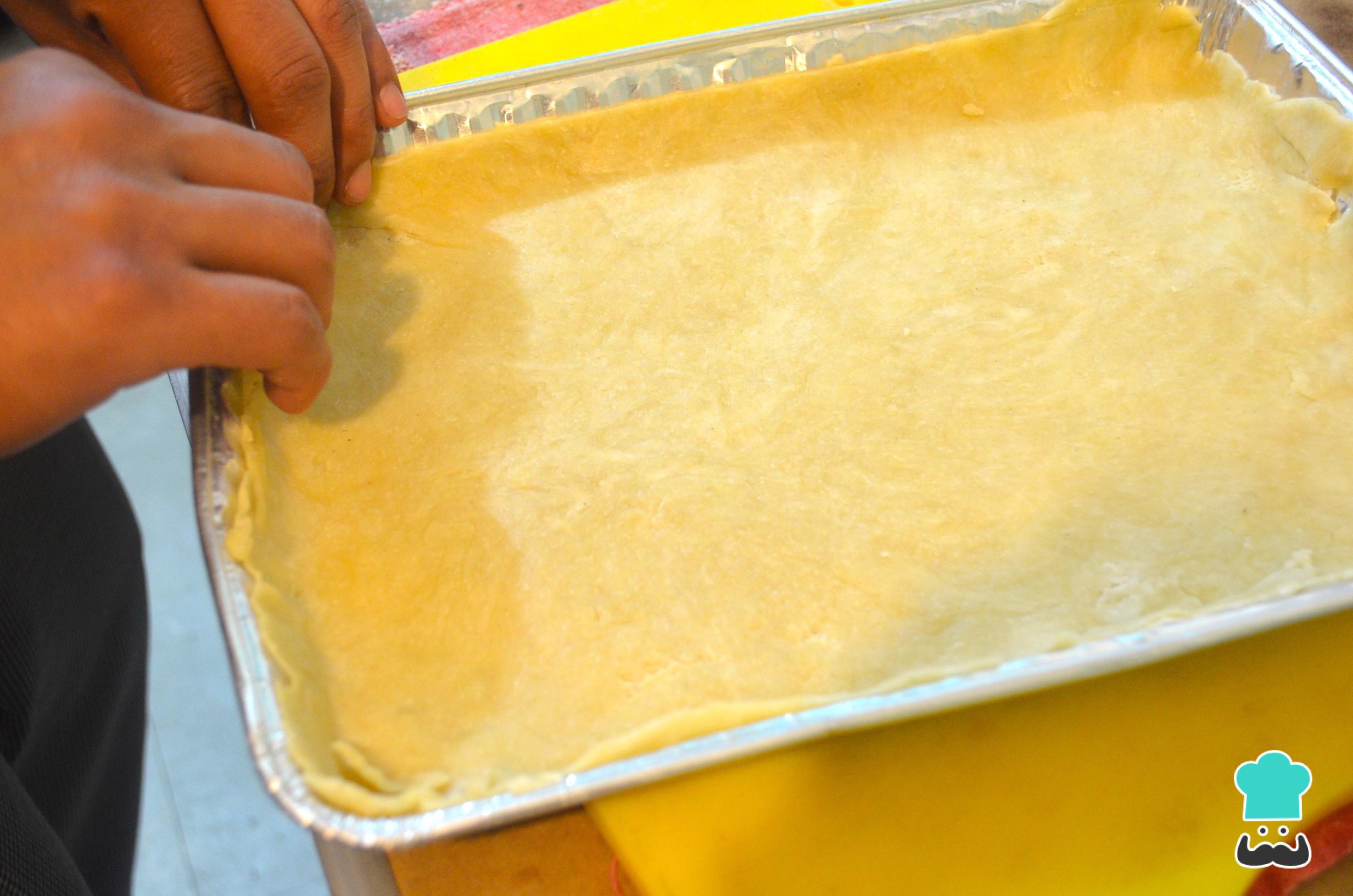 Dica: Esta massa é muito quebradiça, por isso não aconselhamos abrir ela com um rolo. Pressione a massa com os dedos, para ajustar às beiradas.