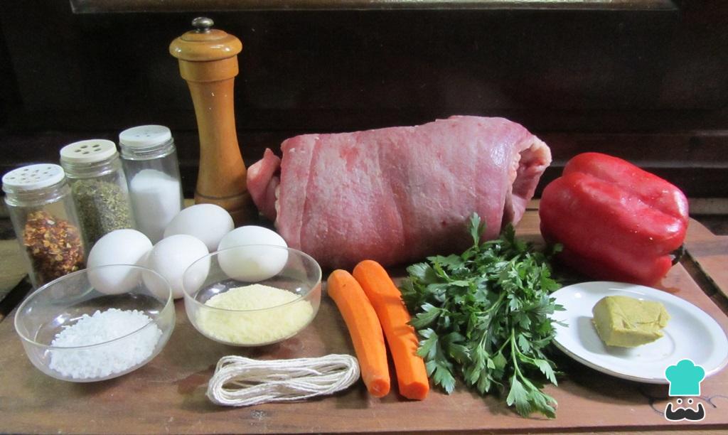 Comece por reunir todos os ingredientes necessários ao preparo desta receita com matambre. Assim será mais fácil cozinhar.