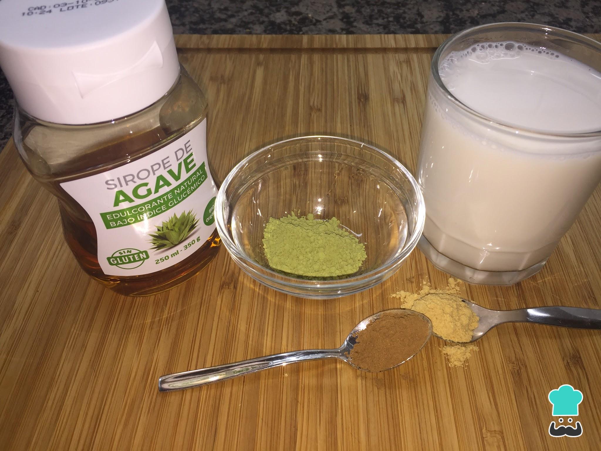O primeiro passo para fazer esta bebida de matcha latte é juntar todos os ingredientes necessários para assim preparar a sua bebida mais rápido!