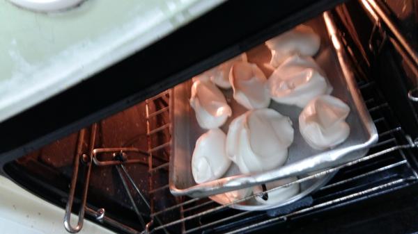 Unte um tabuleiro de forno com manteiga e coloque aí alguns montinhos de merengue. Leve a assar no forno a 120ºC durante 20-25 minutos.