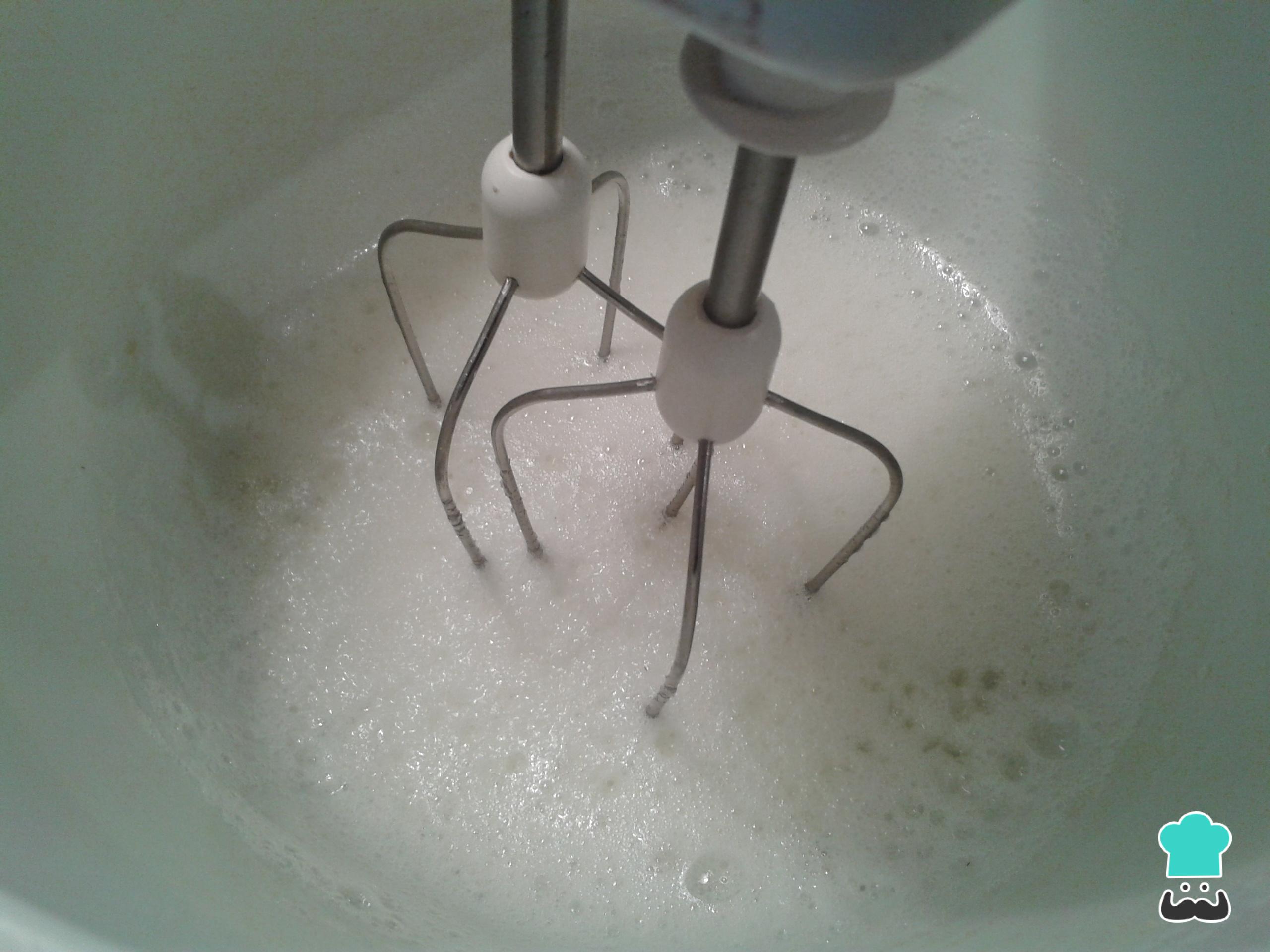Bata as claras em neve junto com o açúcar, algumas gotas de suco de limão e a pitada de sal.