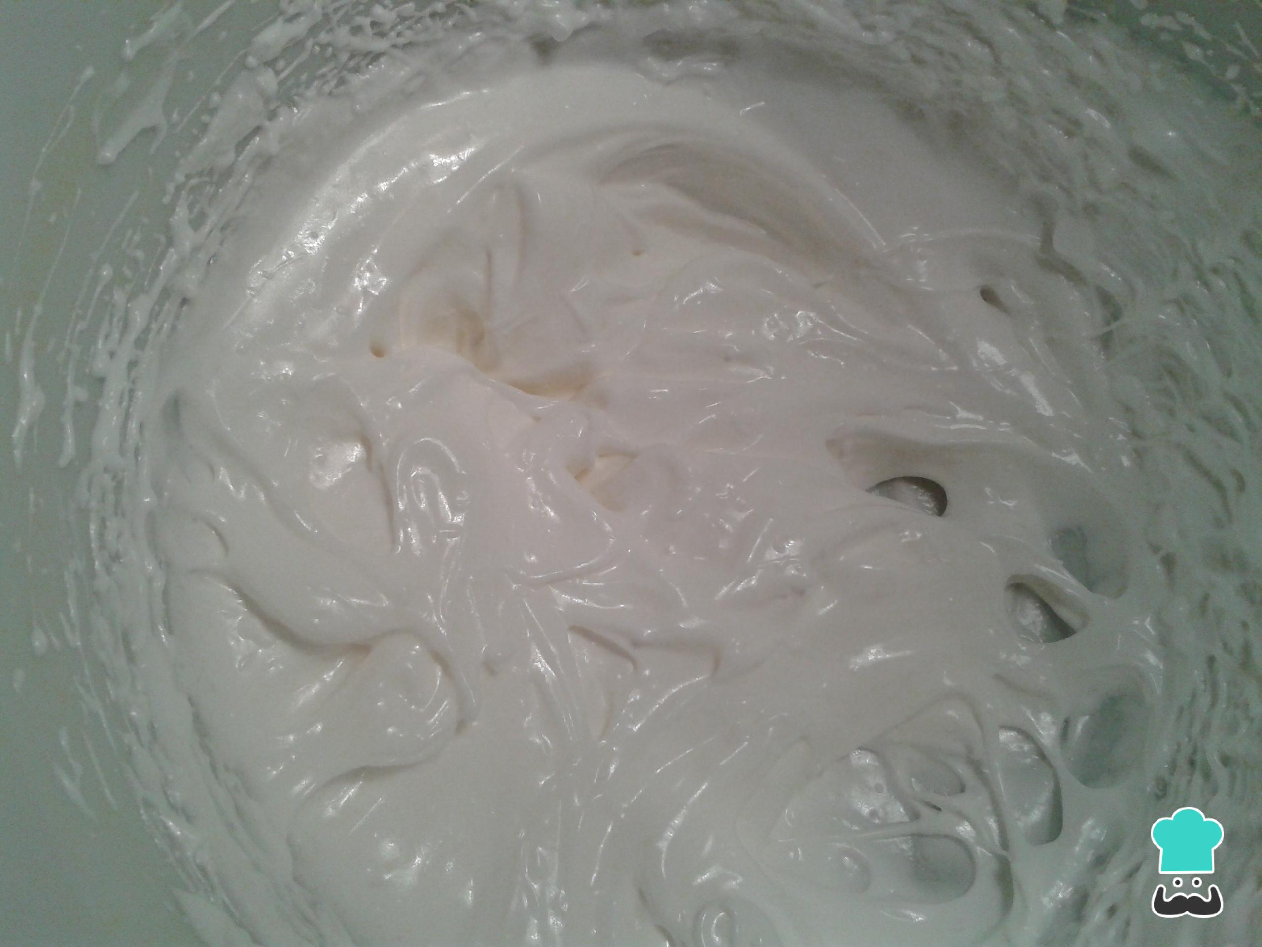 Ao fim de alguns minutos, o resultado deverá ser um creme firme e brilhante que não escorre na tigela. É importante conseguir um creme assim, caso contrário seu merengue irá murchar no forno.