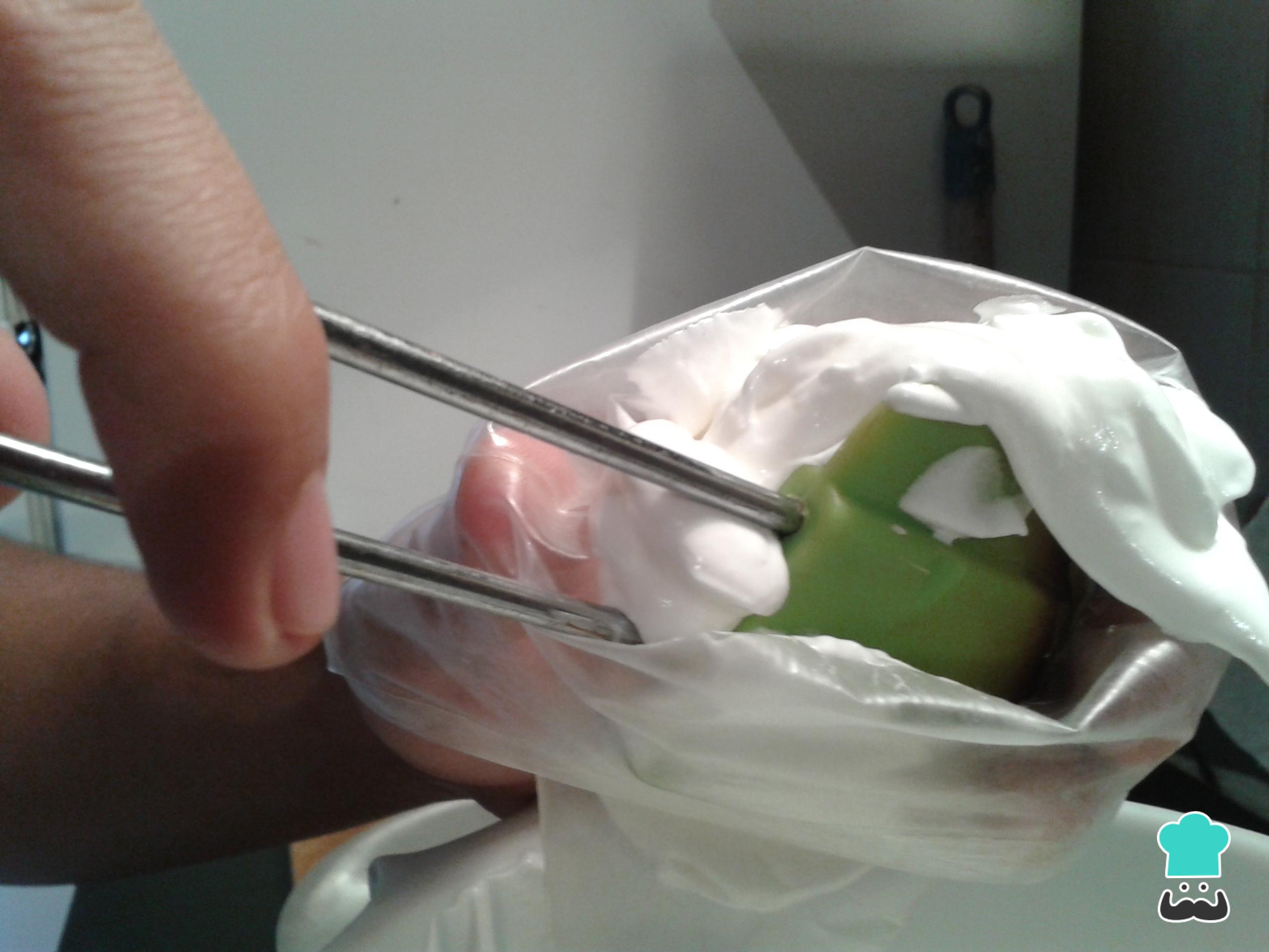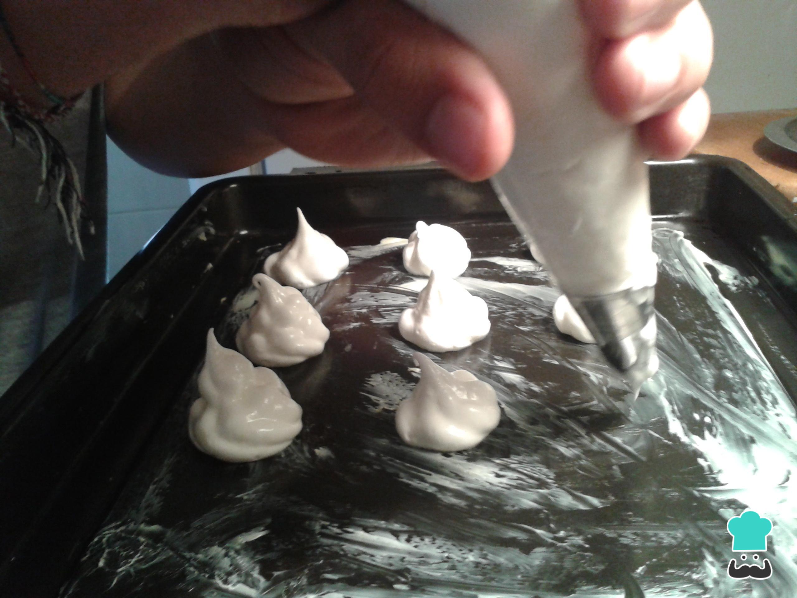 Preaqueça o forno a 120ºC e coloque o creme em um saco de confeiteiro com um bico comum.
