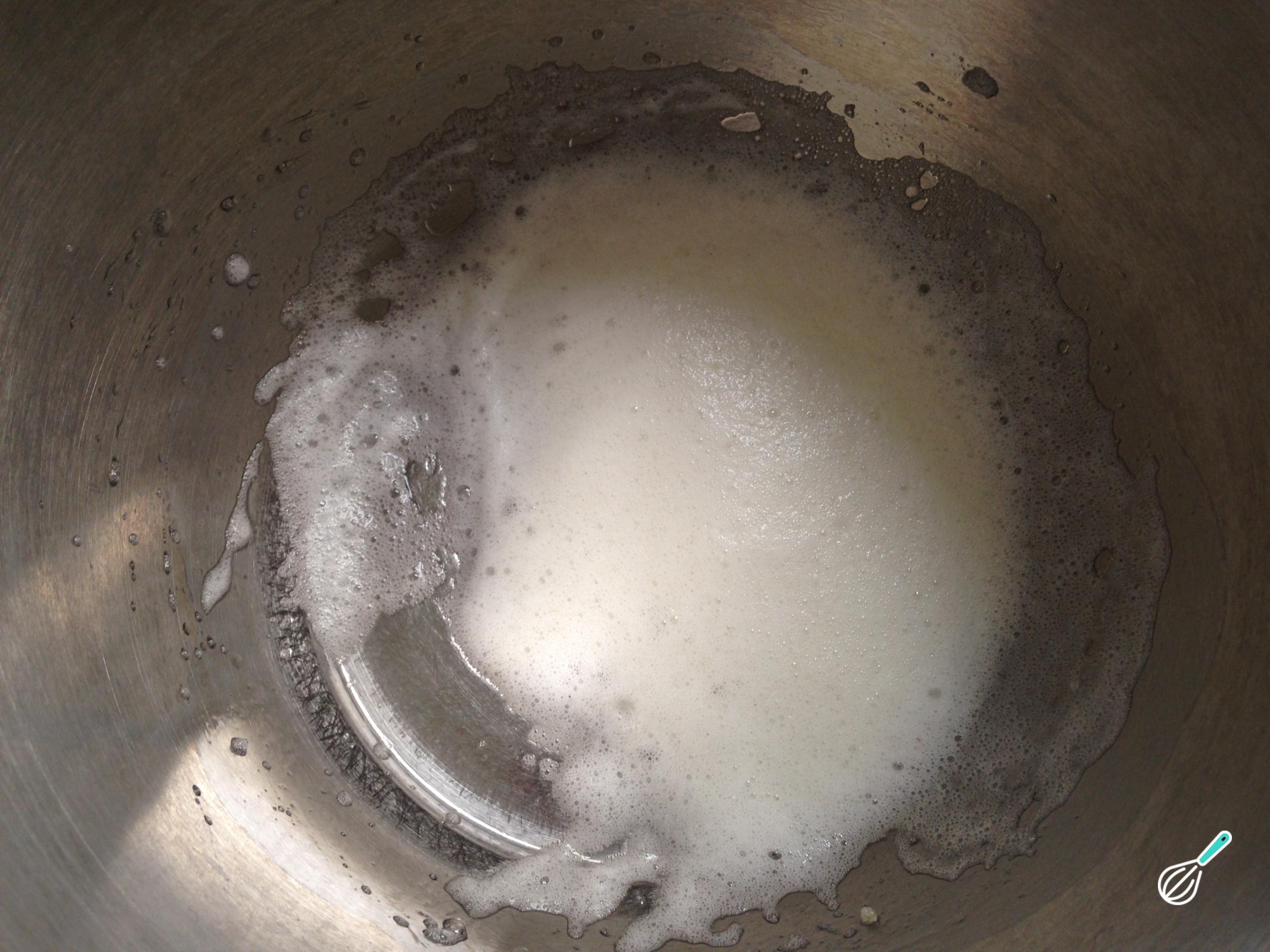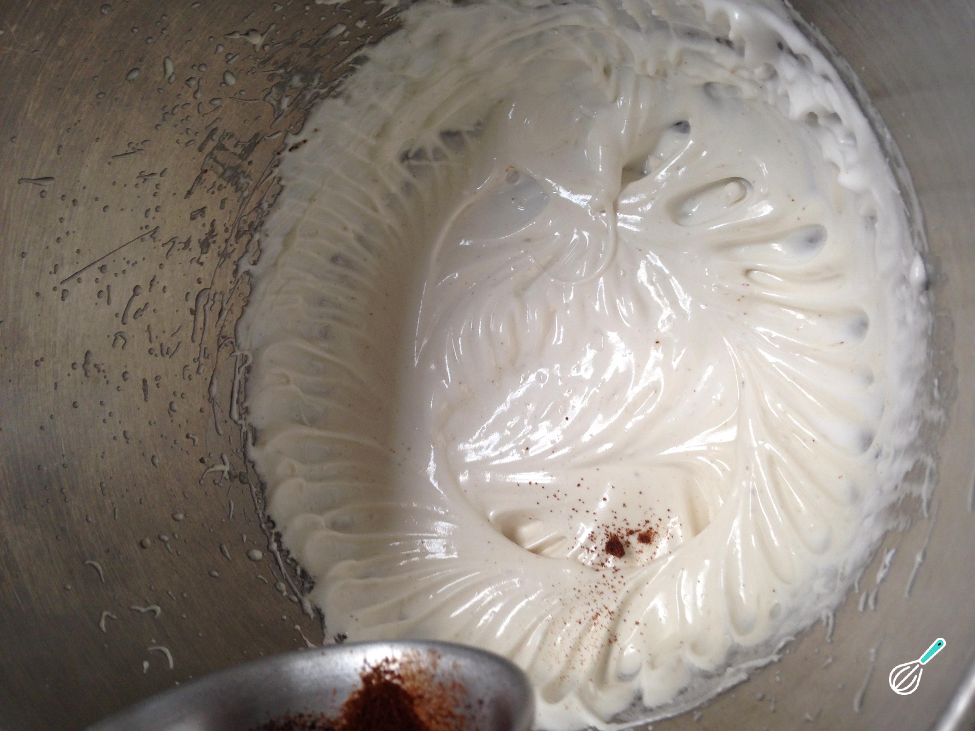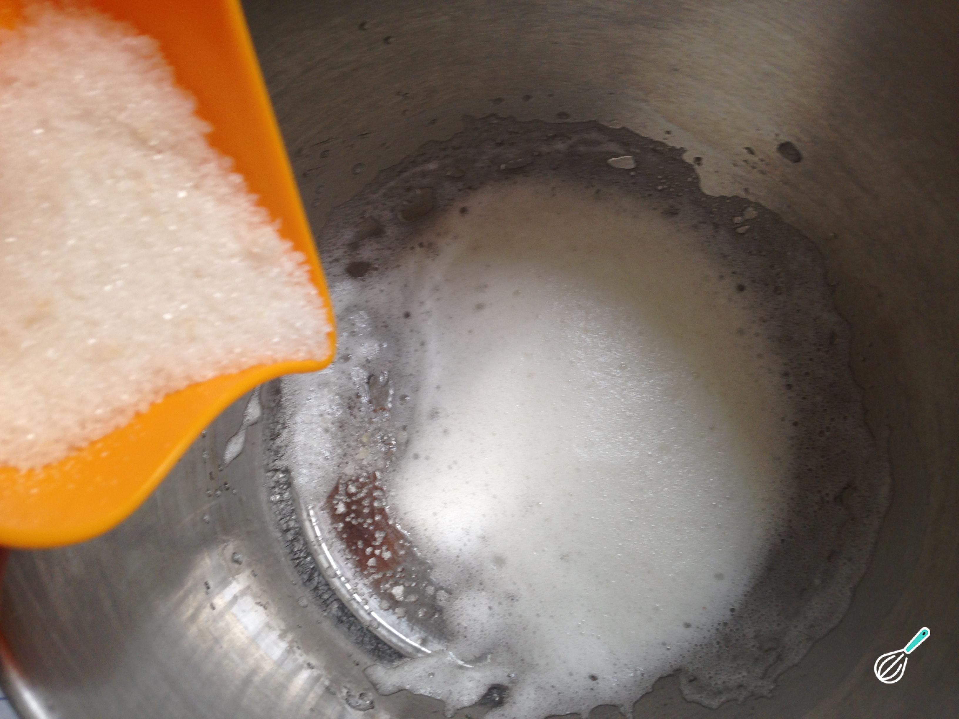 Continue preparando os merengues de café: adicione o açúcar gradualmente sem deixar de bater as claras.