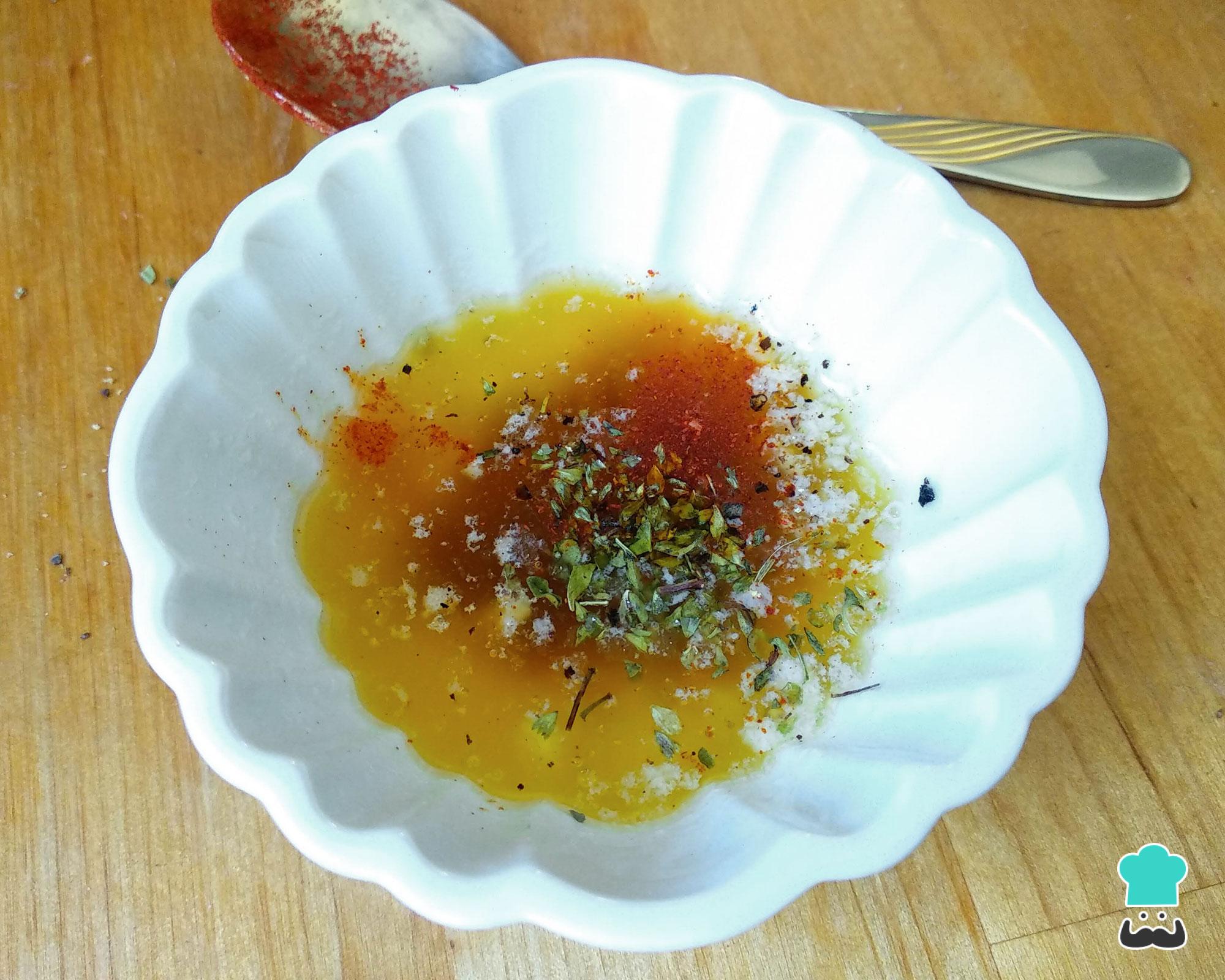 À parte misture os temperos com a manteiga derretida, para conseguir um molho para milho assado bem simples. No entanto este é um passo opcional, você pode servir seu milho verde assado sem temperos.