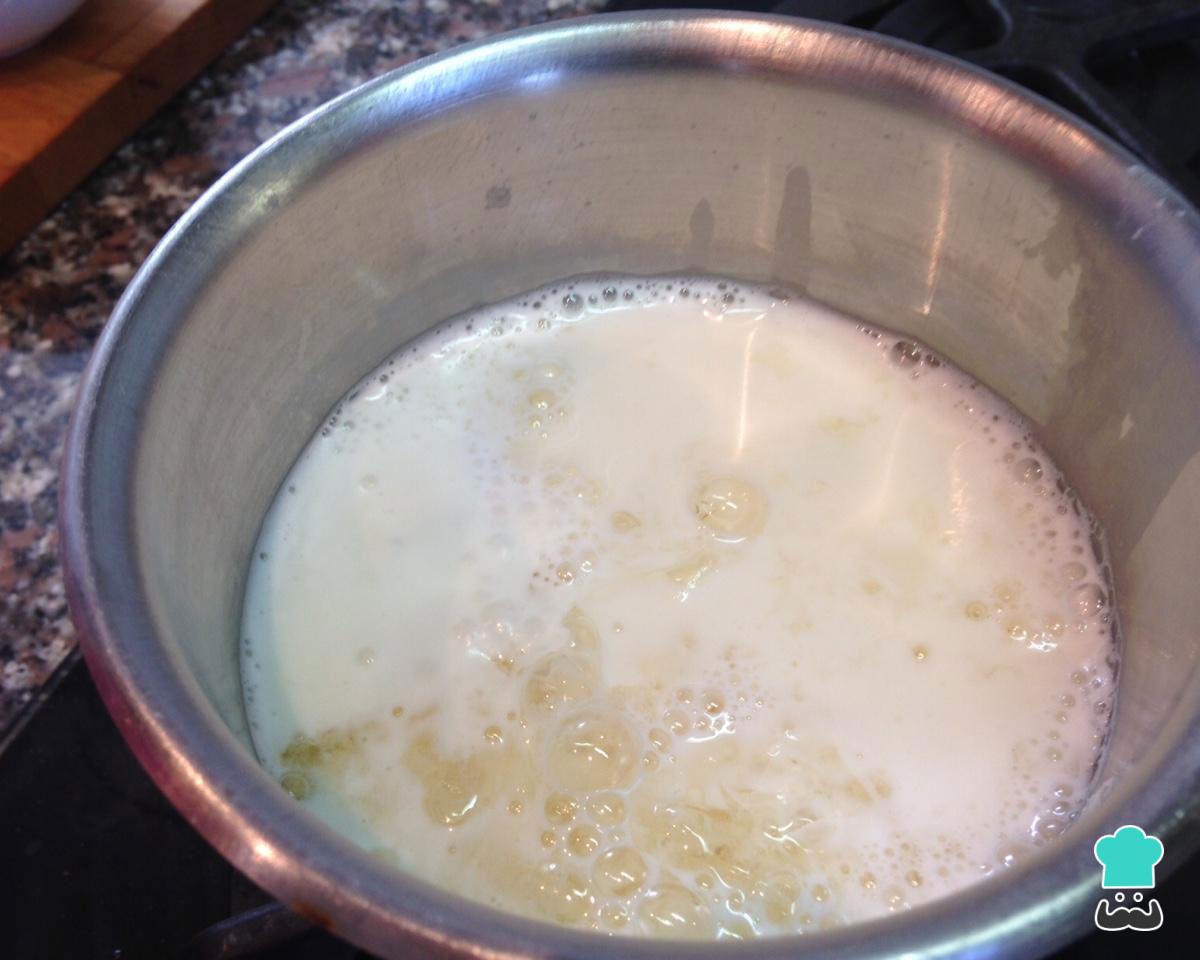 O primeiro passo é colocar a tapioca hidratando no leite (1 litro) por 1 hora. Pode deixar em temperatura ambiente mas, se estiver muito calor, aconselhamos colocar na geladeira para o leite não azedar.