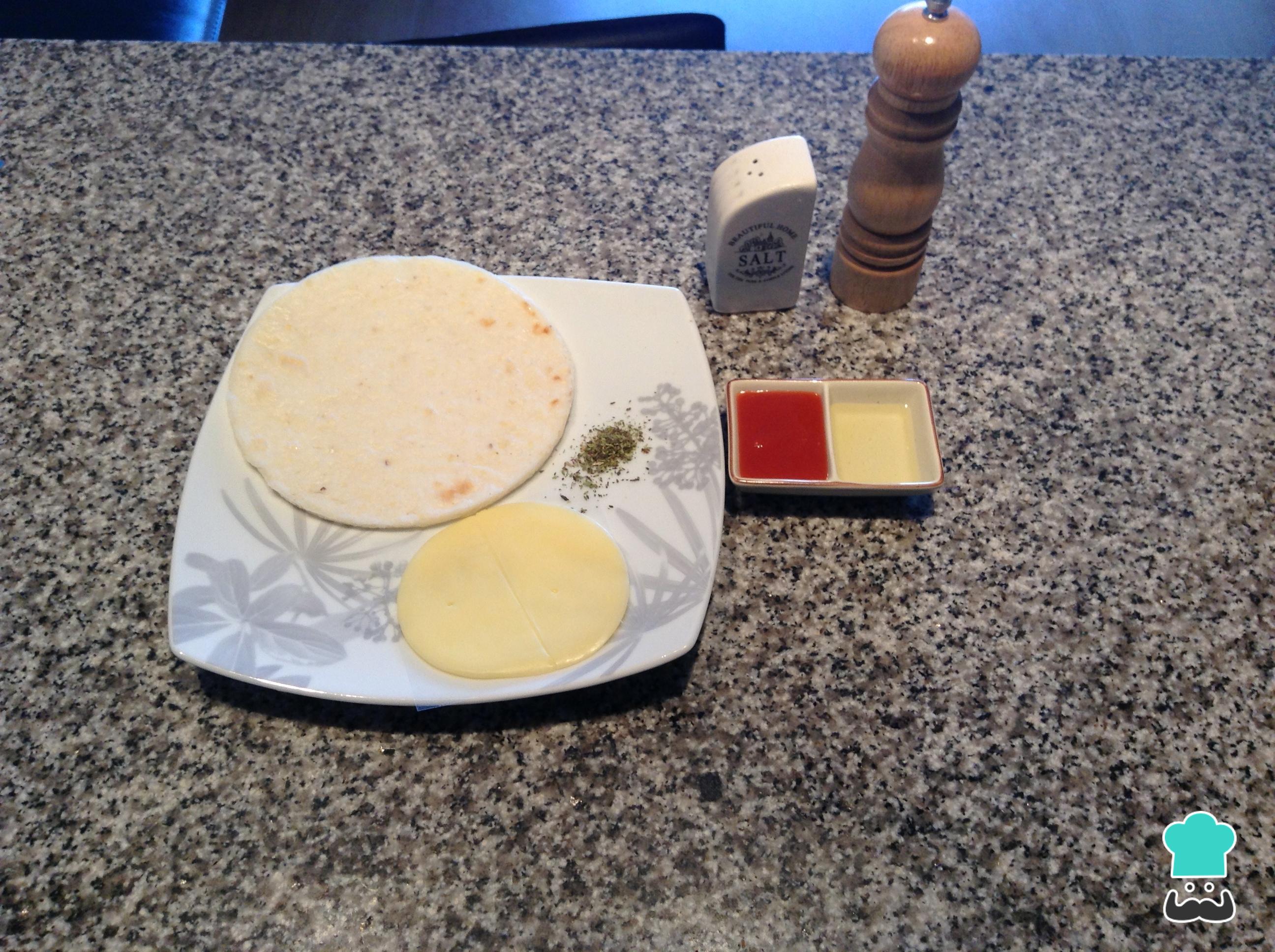 Para preparar esta receita de mini pizza de queijo, comece por reunir os ingredientes necessários. Como molho de queijo você pode simplesmente usar ketchup, molho para pizza ou molho de tomate caseiro.