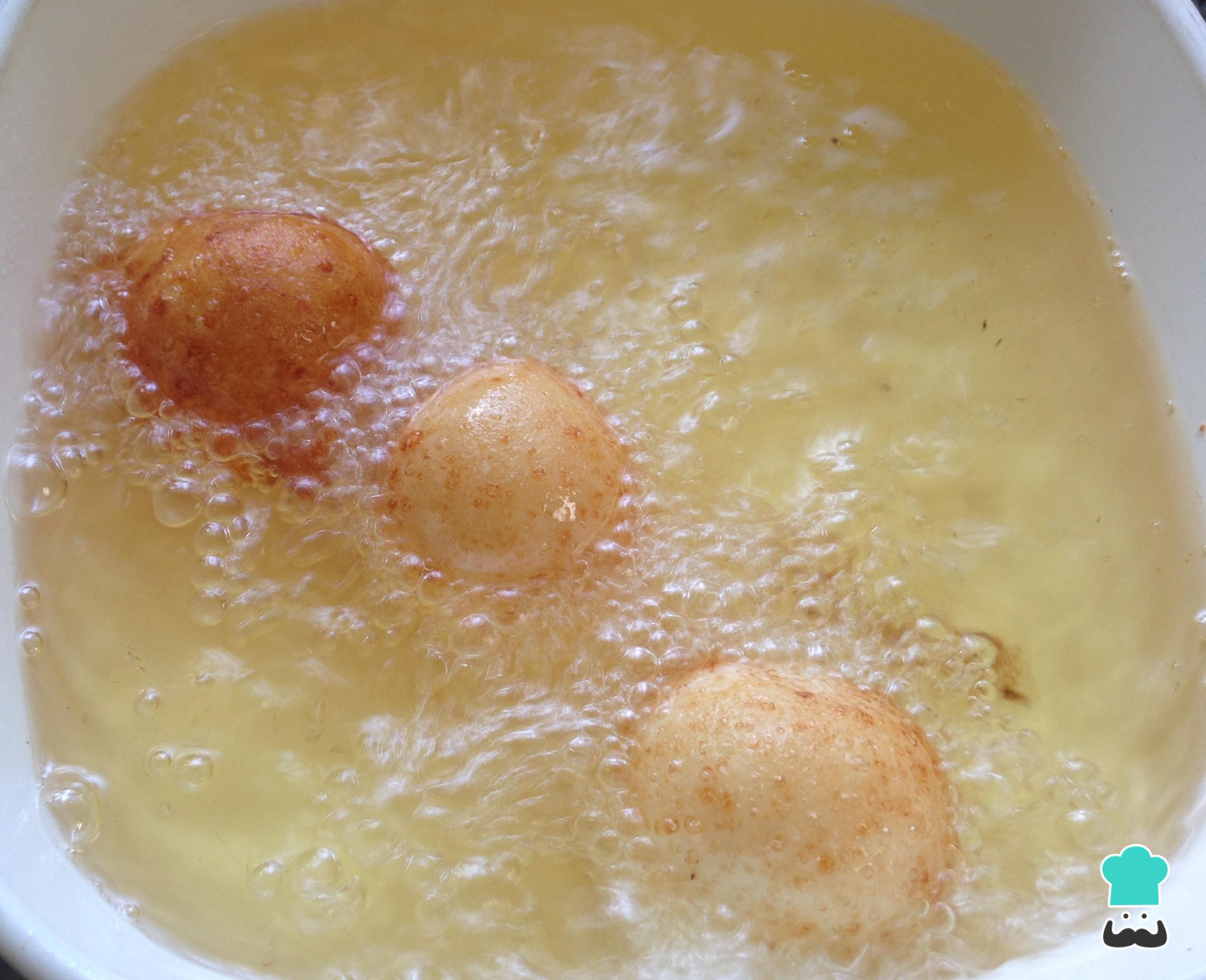 Coloque as bolinhas dos sonhos de goiabada fritando em óleo quente abundante até ficarem douradas. Depois retire-as para papel absorvente e deixe escorrer o excesso de óleo.