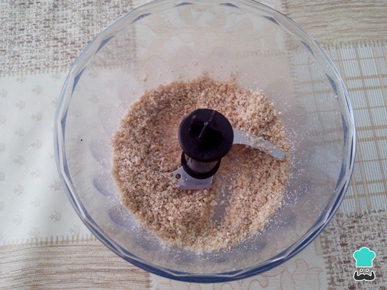 Para a base desta torta holandesa funcional comece por triturar as castanhas de caju até ficarem bem finas, de preferência em um processador de cozinha.