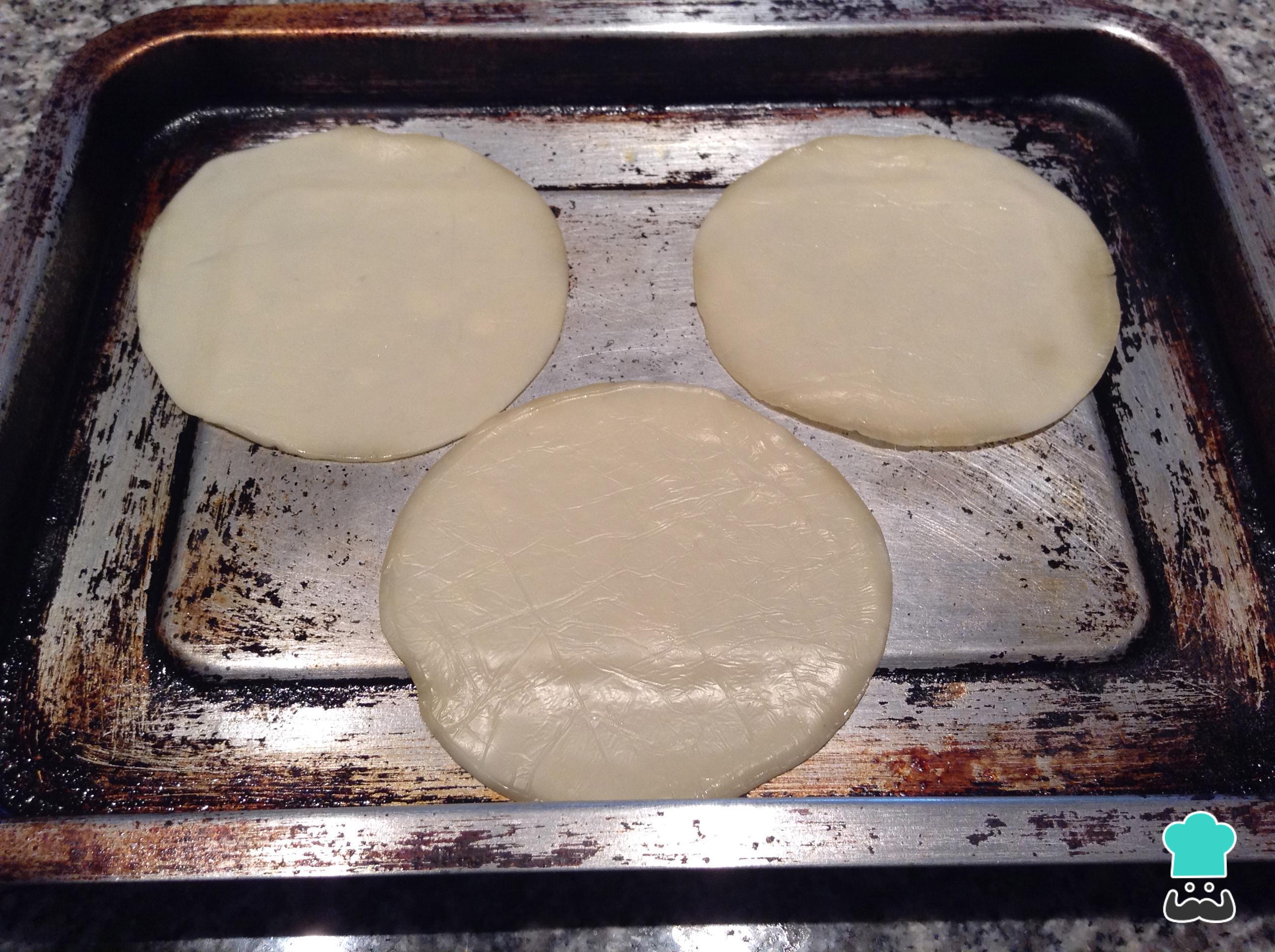 Adicione o molho de tomate para pizza e o queijo mussarela cortado em tiras grossas em cada uma das massas.
