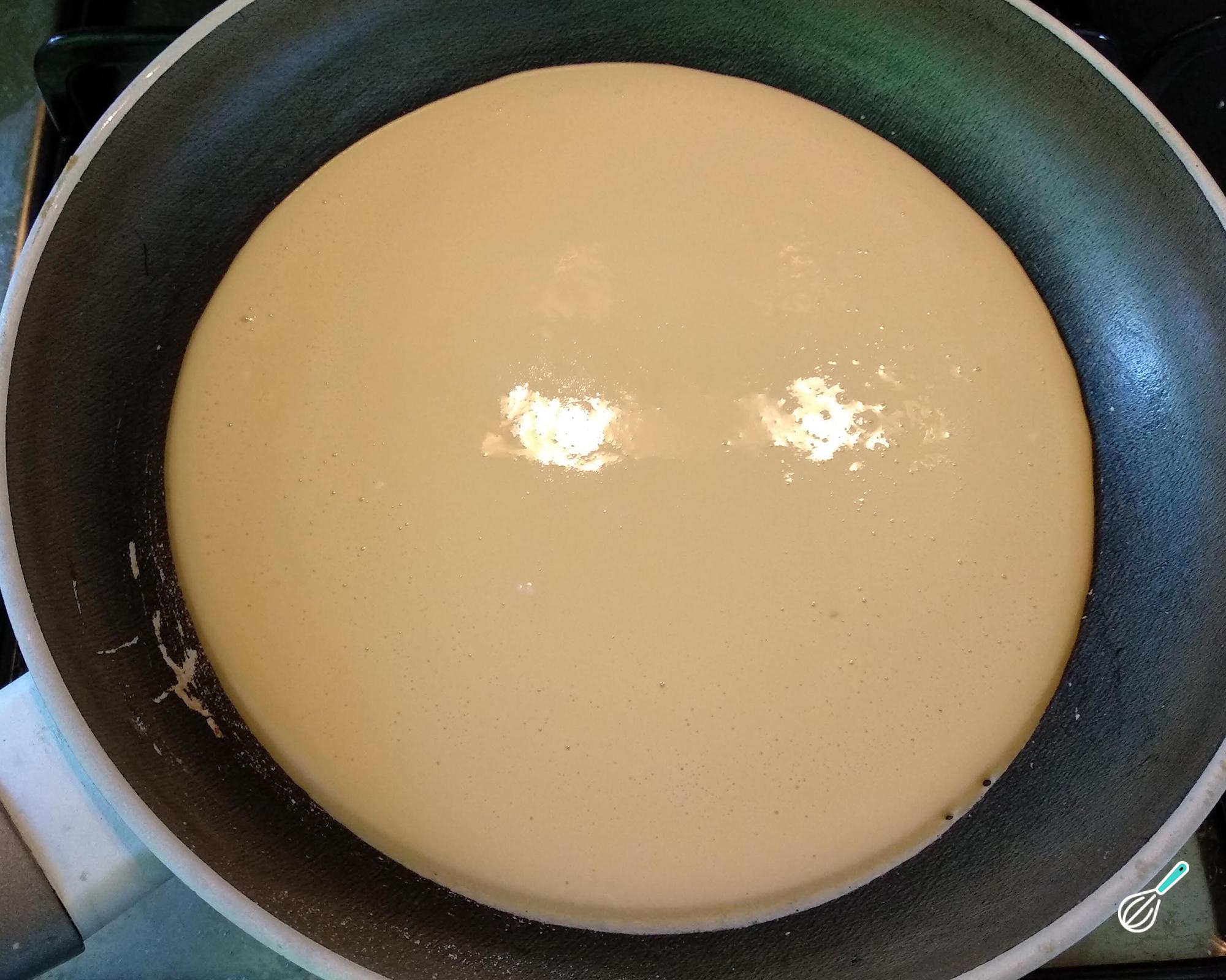 Coloque essa mistura de misto quente low carb numa frigideira untada e leve ao fogo médio. Tampe, deixe ficar por 1-2 minutos e, quando estiver consistente, vire para cozinhar do outro lado.