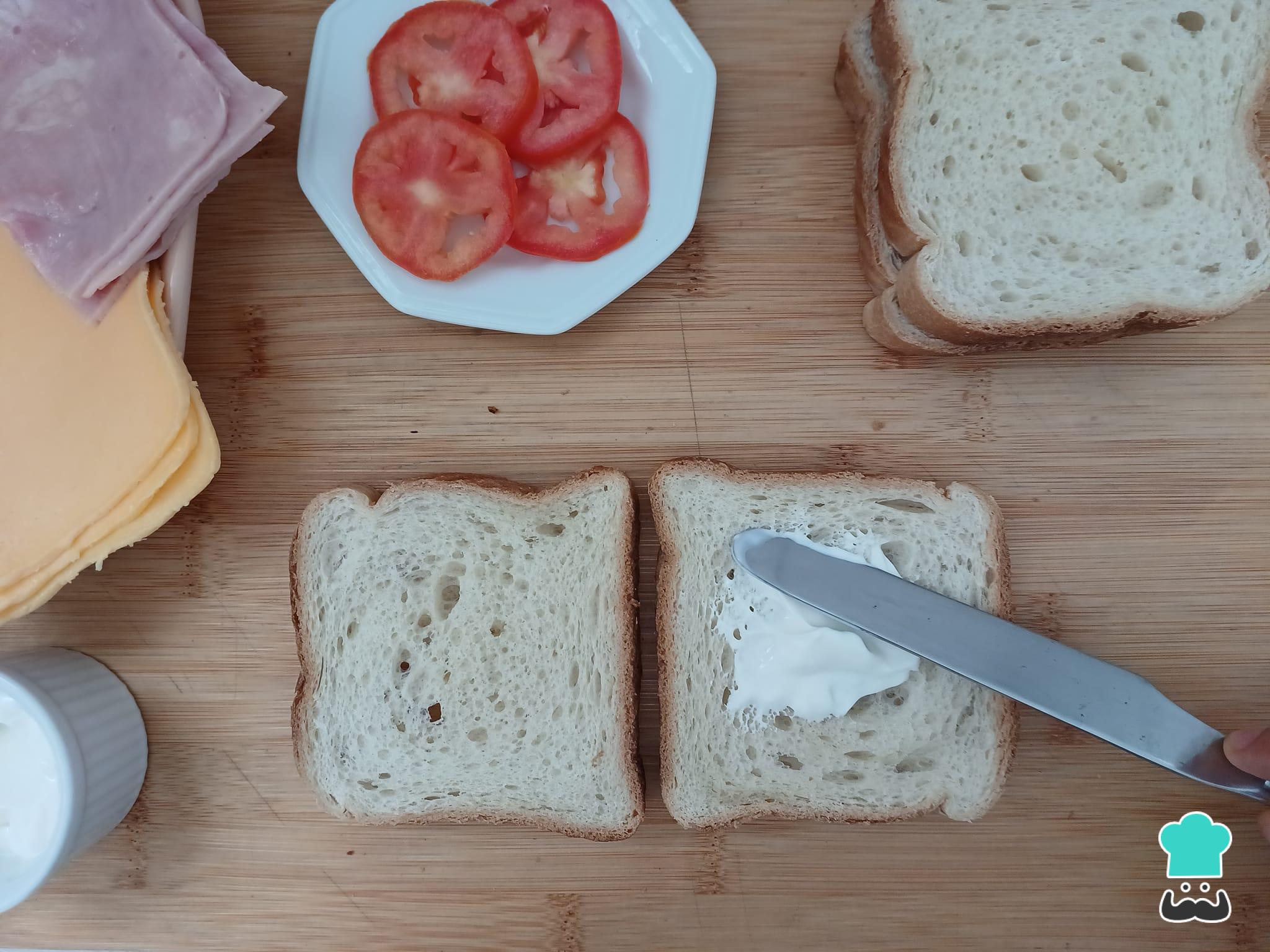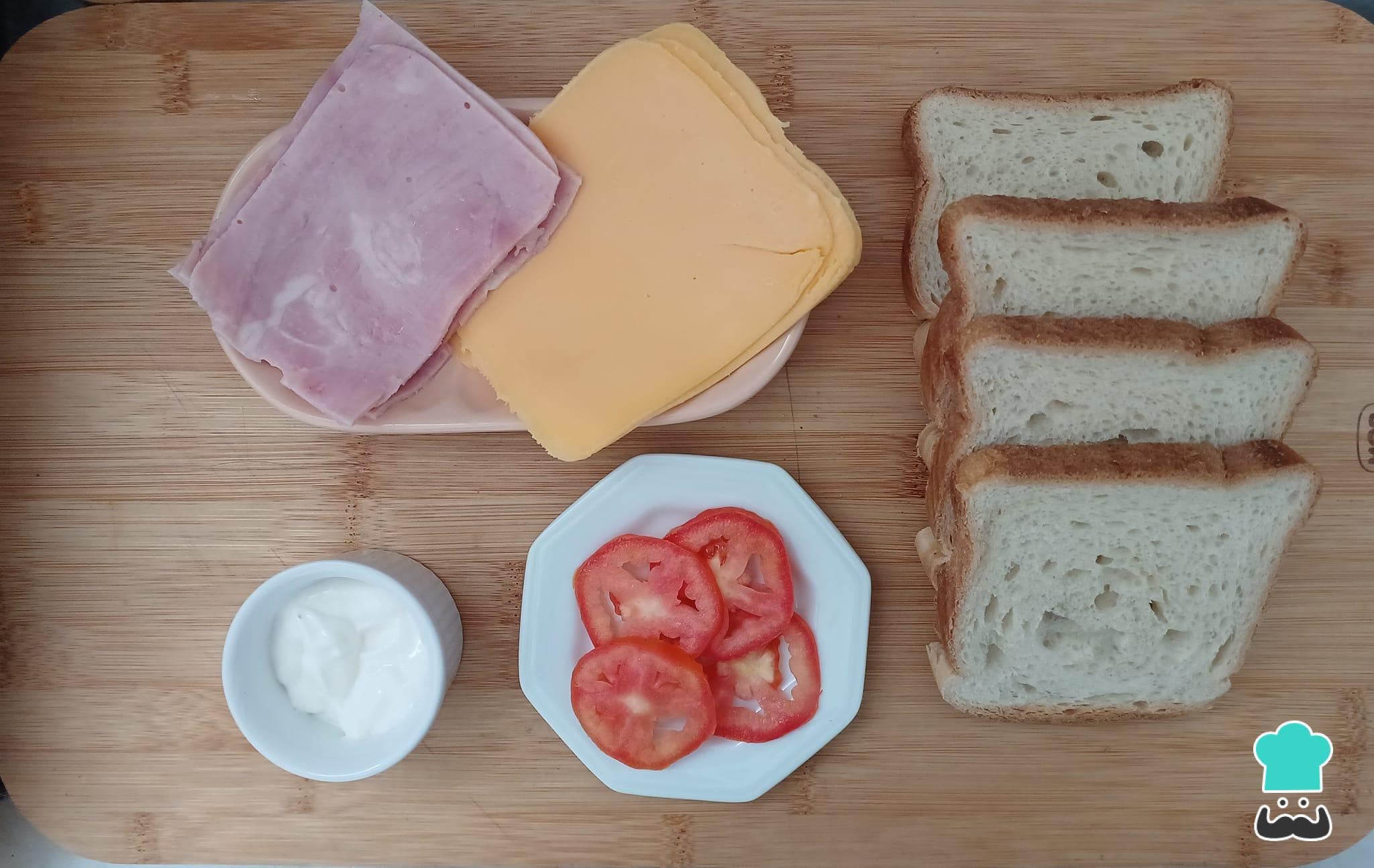 Separe os ingredientes necessários para o preparo do misto quente que será assado na airfryer.