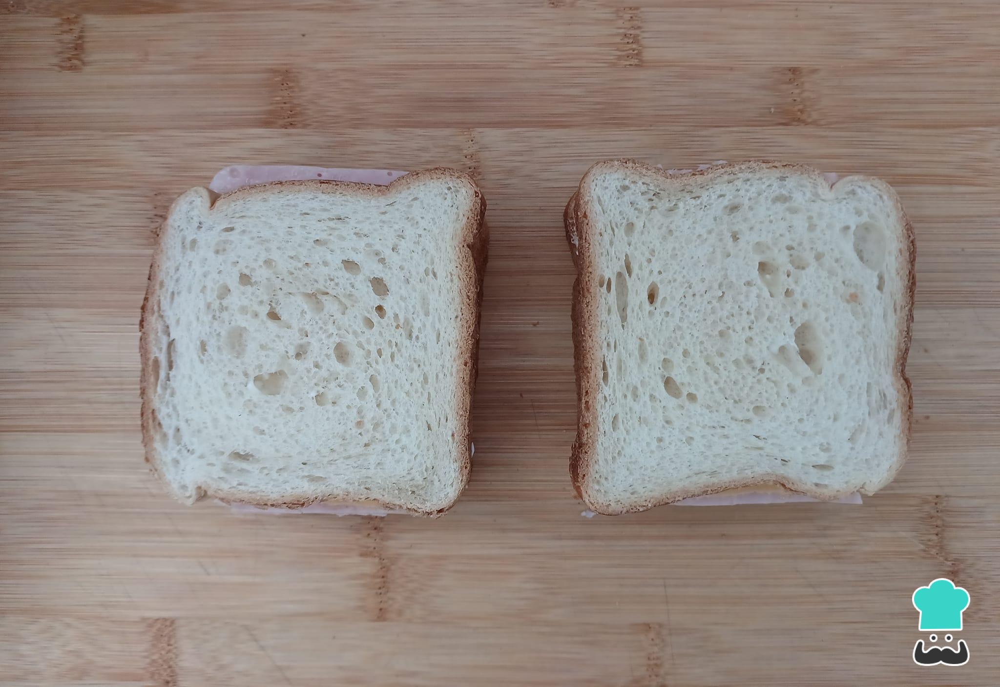 Coloque uma fatia de queijo prato e uma fatia de presunto.