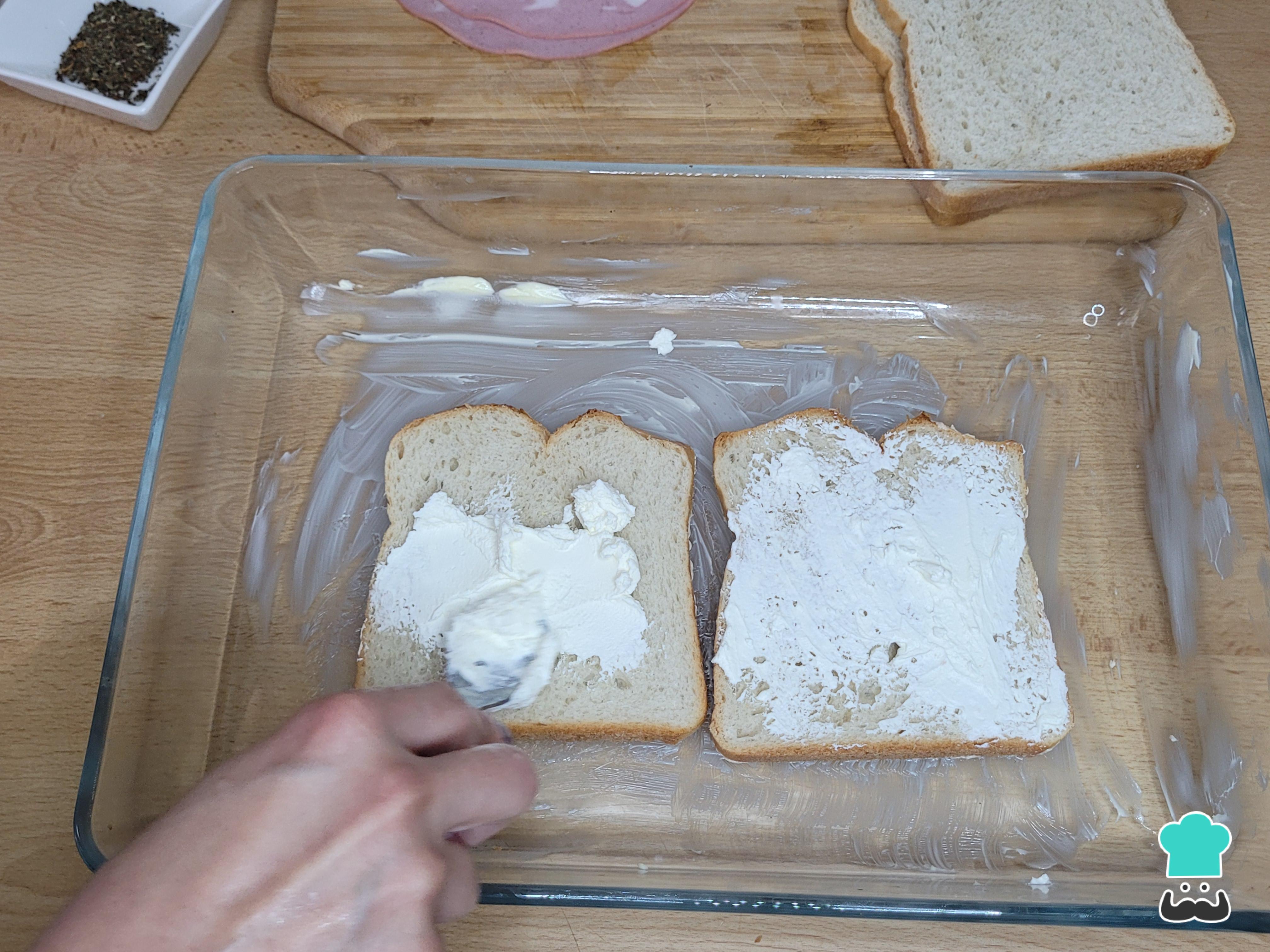 Espalhe o cream cheese ou requeijão sobre cada fatia de pão