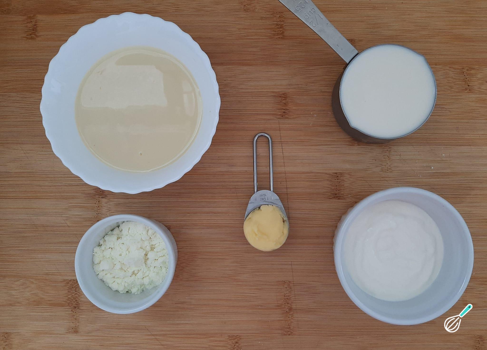 Separe os ingredientes necessários para o preparo desta receita de leite moça de colher.