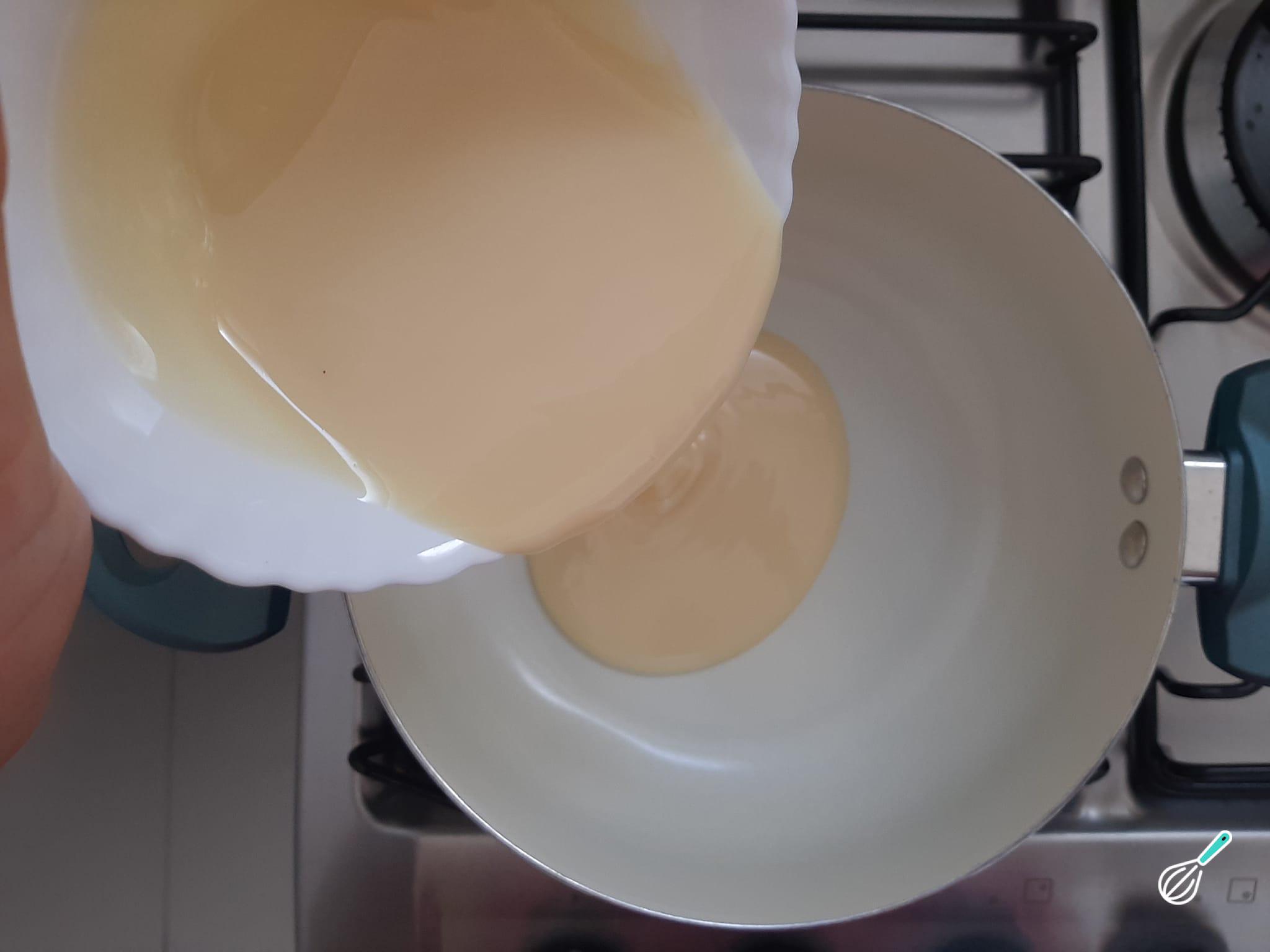 Numa panela média, adicione o leite condensado, com o fogo ainda desligado.