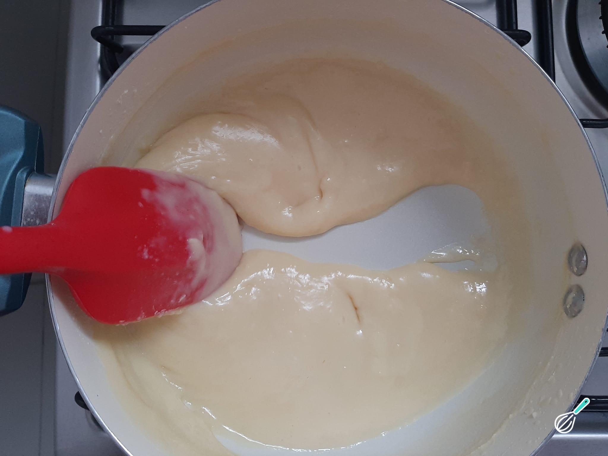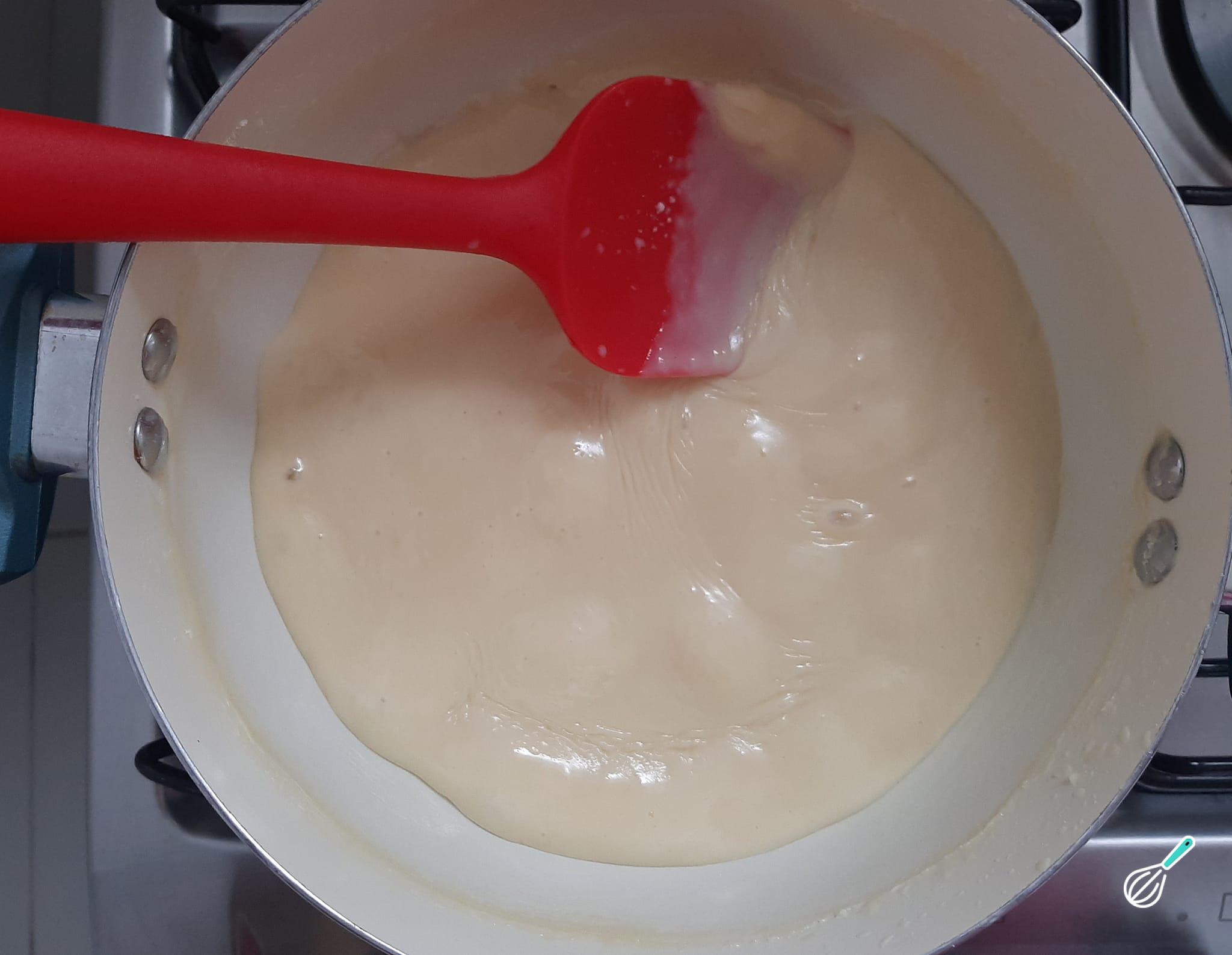 Quando o creme começar a se soltar do fundo da panela (demorando para retornar), estará no ponto correto.