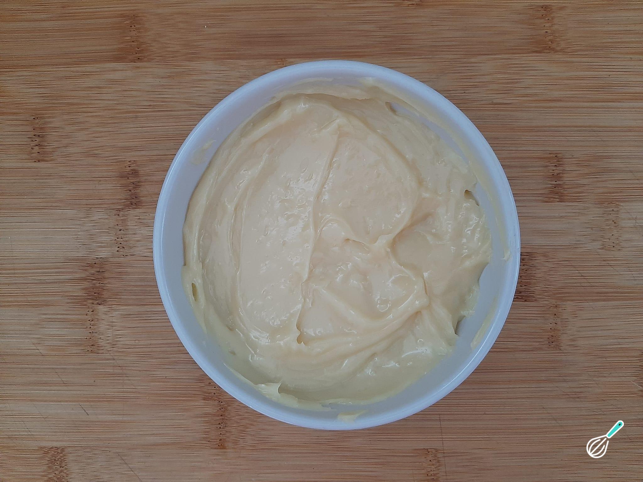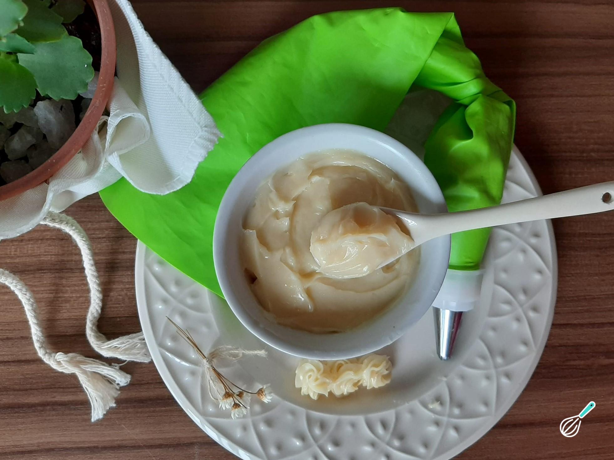Transfira o creme para um recipiente e cubra com plástico filme.