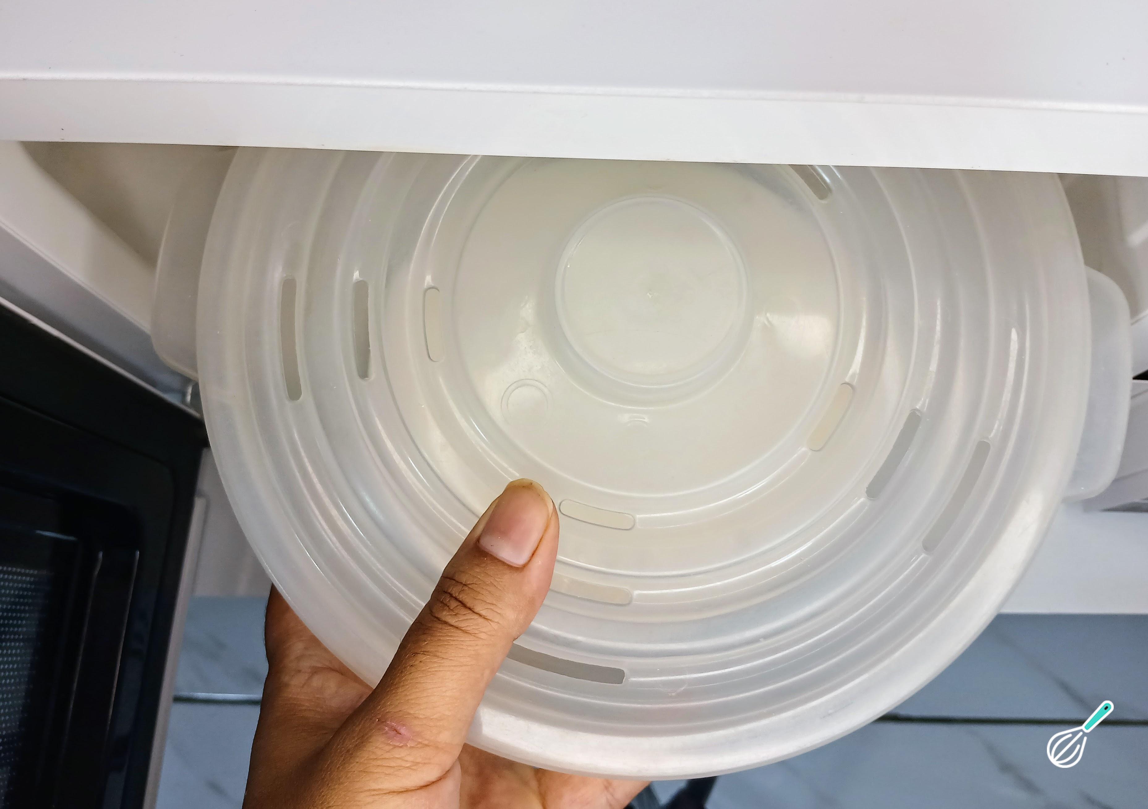 Tampe a panela e leve ao micro-ondas por 6 minutos. Abra o micro-ondas depois de 2 minutos e mexa. Repita esse processo até completar os 6 minutos.