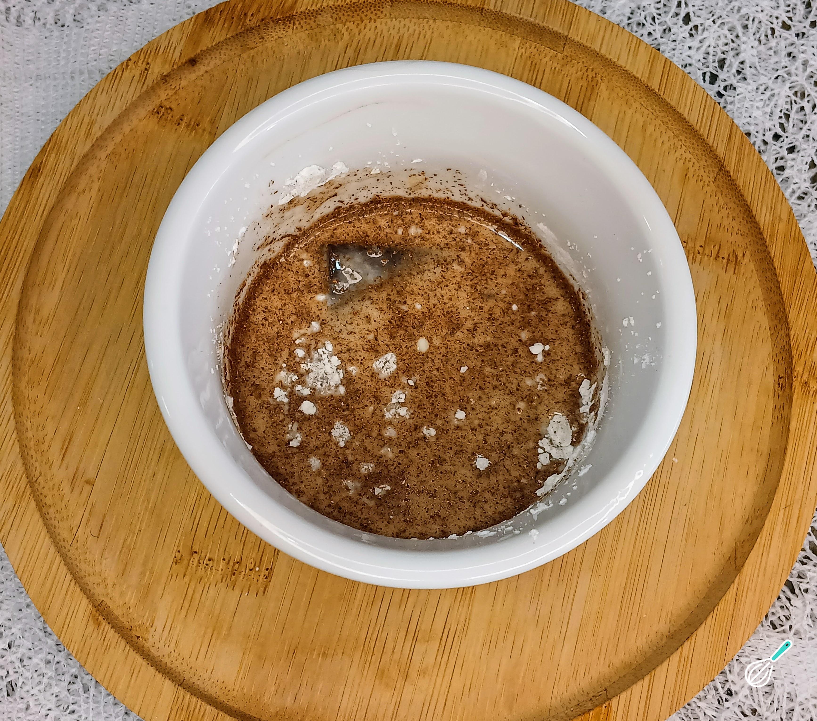 Coloque todos os ingredientes em um recipiente e leve ao micro-ondas por 30 segundos. Mexa bem ao retirar do micro-ondas, misture.