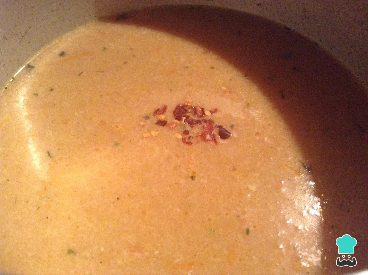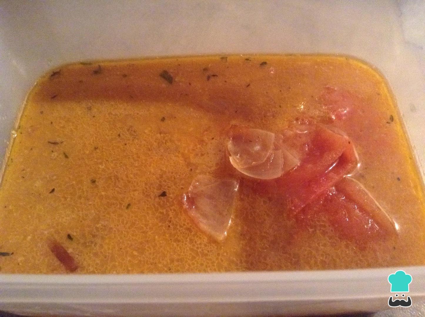 Quando o molho americano estiver morno, bata no liquidificador ou com um mixer para derreter os pedaços de cebola e tomate.