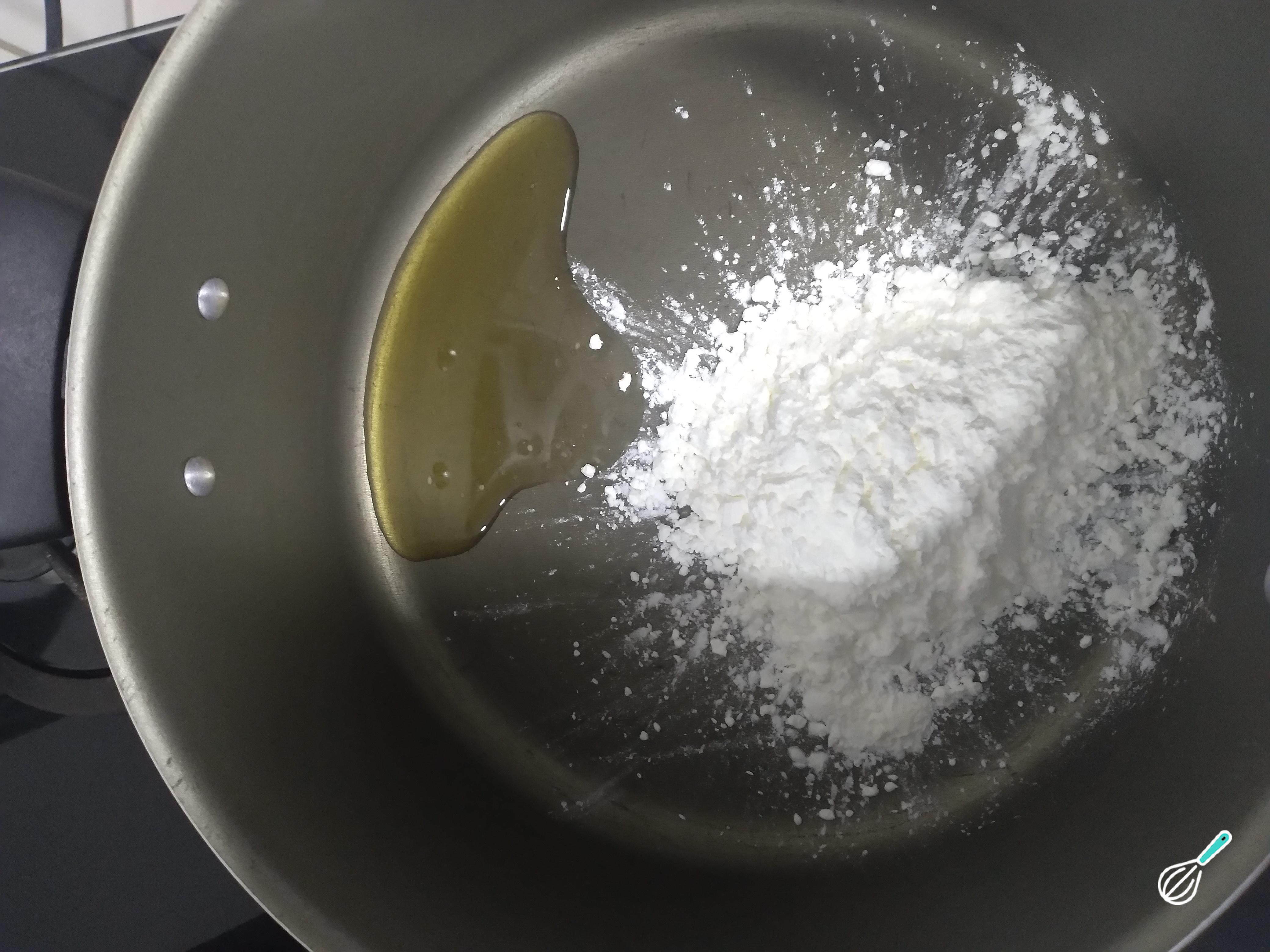 Em uma panela com o fogo baixo ligado, acrescente a manteiga clarificada e a maizena.