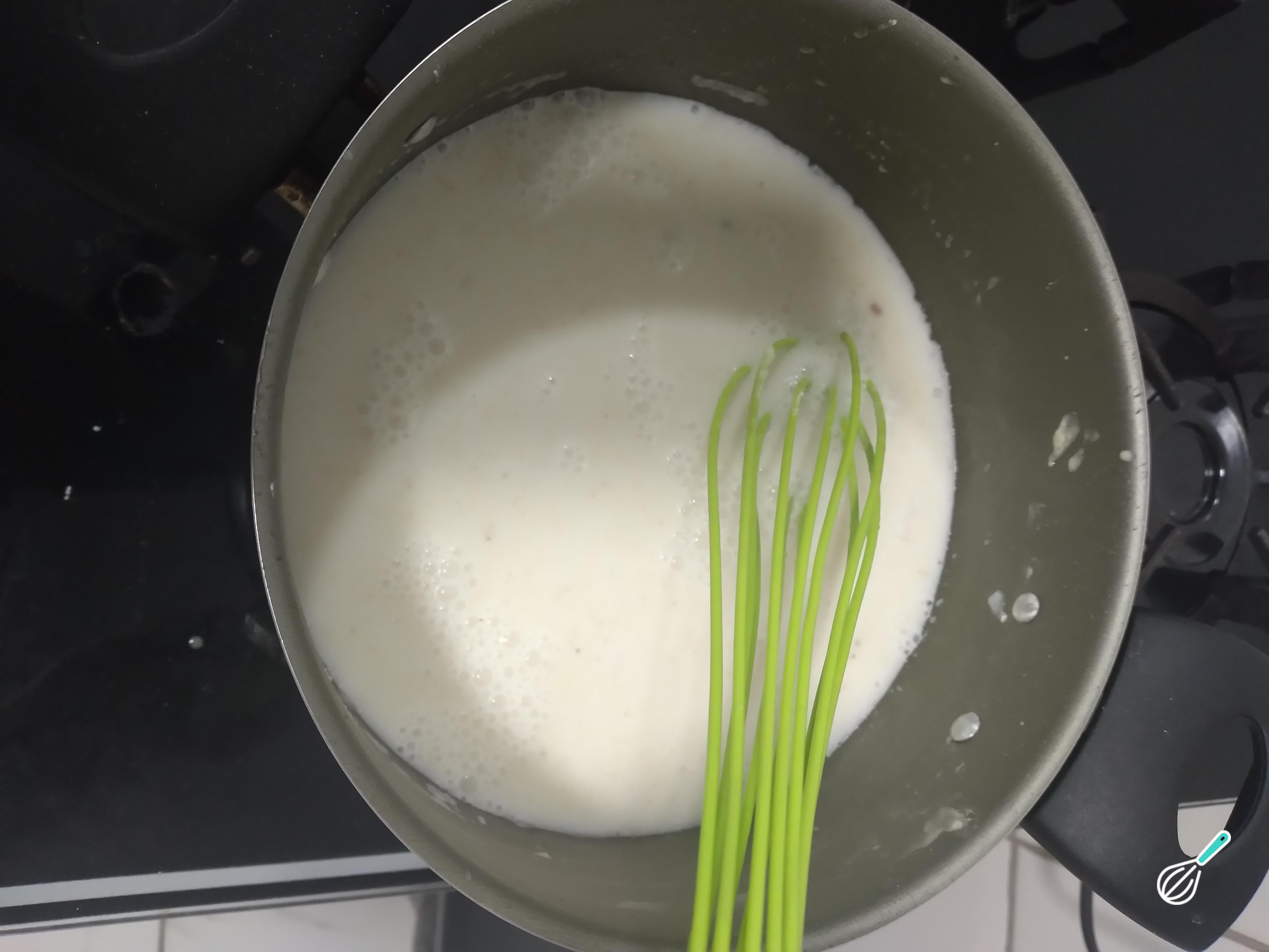 Mexa até dissolver a maizena e ficar bem lisinho e cozinhe por 2 minutos para garantir que não fique com gosto residual.