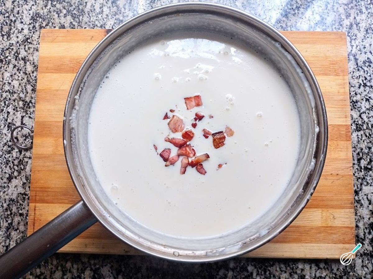 Acompanhe os detalhes dessa receita de molho branco com bacon e creme de leite no nosso passo a passo com fotos!