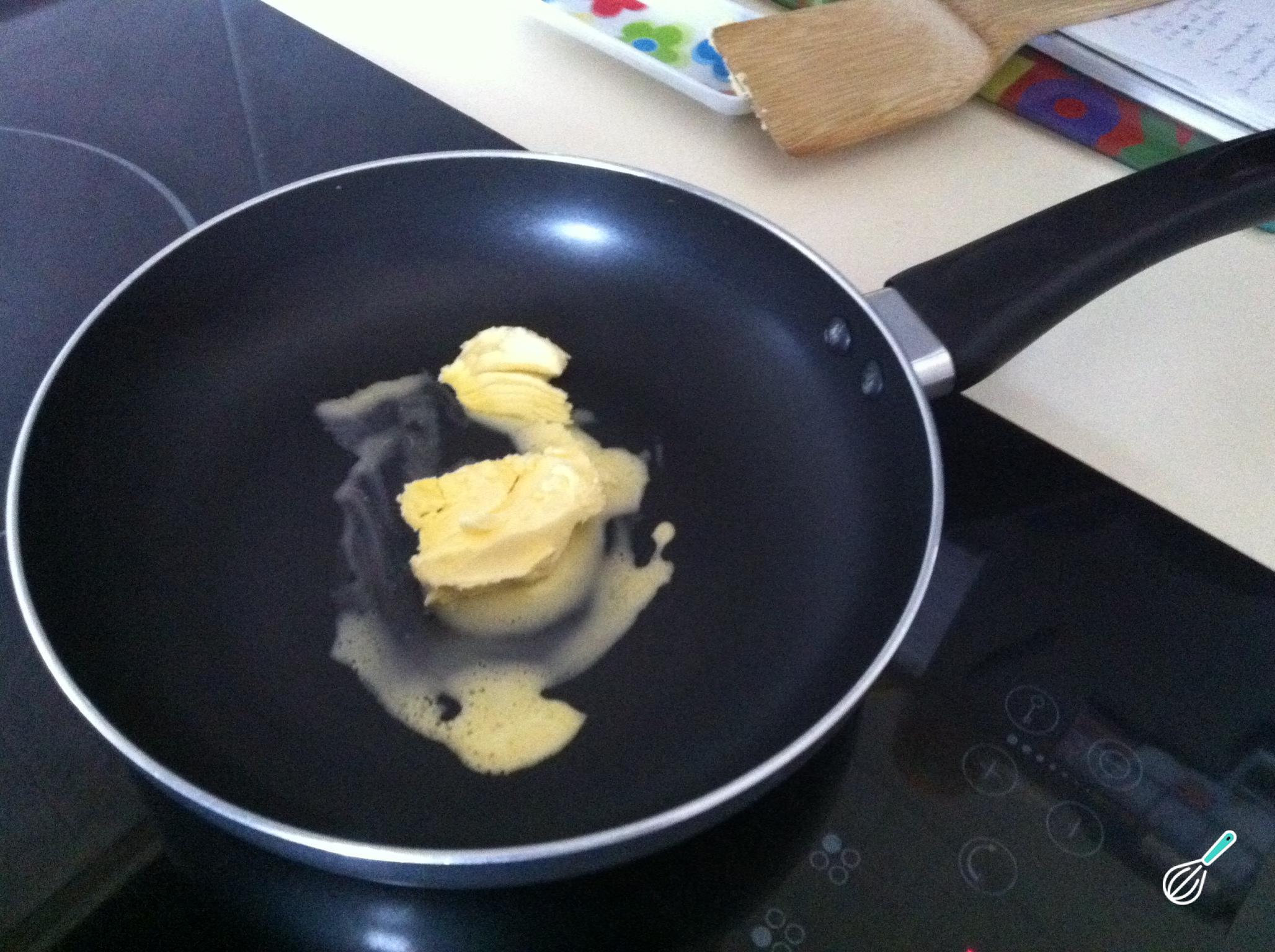 Coloque a manteiga em uma frigideira em fogo baixo, para evitar que se queime, e vá mexendo até derreter por completo.