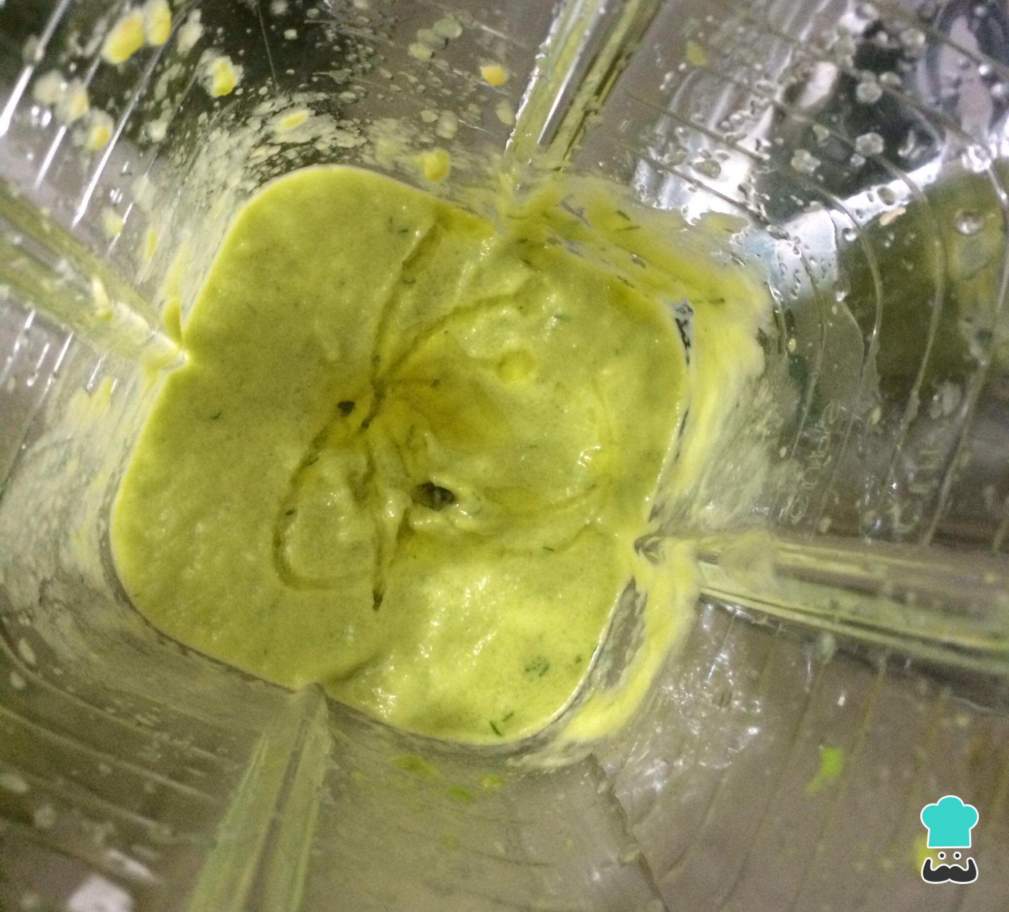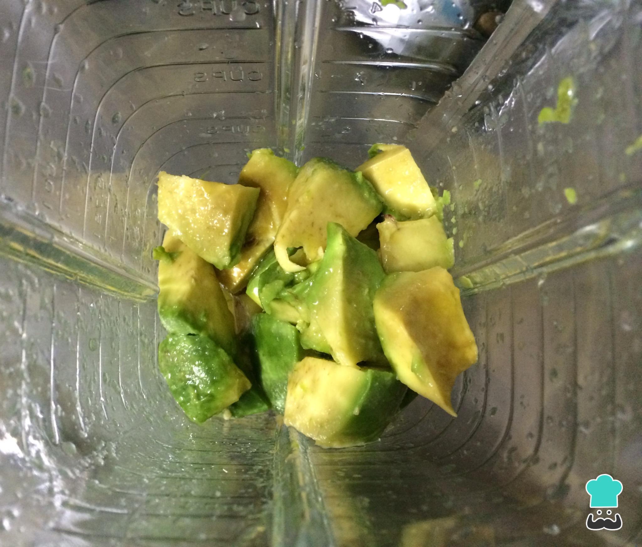 Em um liquidificador, adicione o abacate cortado em pedaços, o suco de limão e um copo de água. Triture até obter uma mistura macia e homogênea.