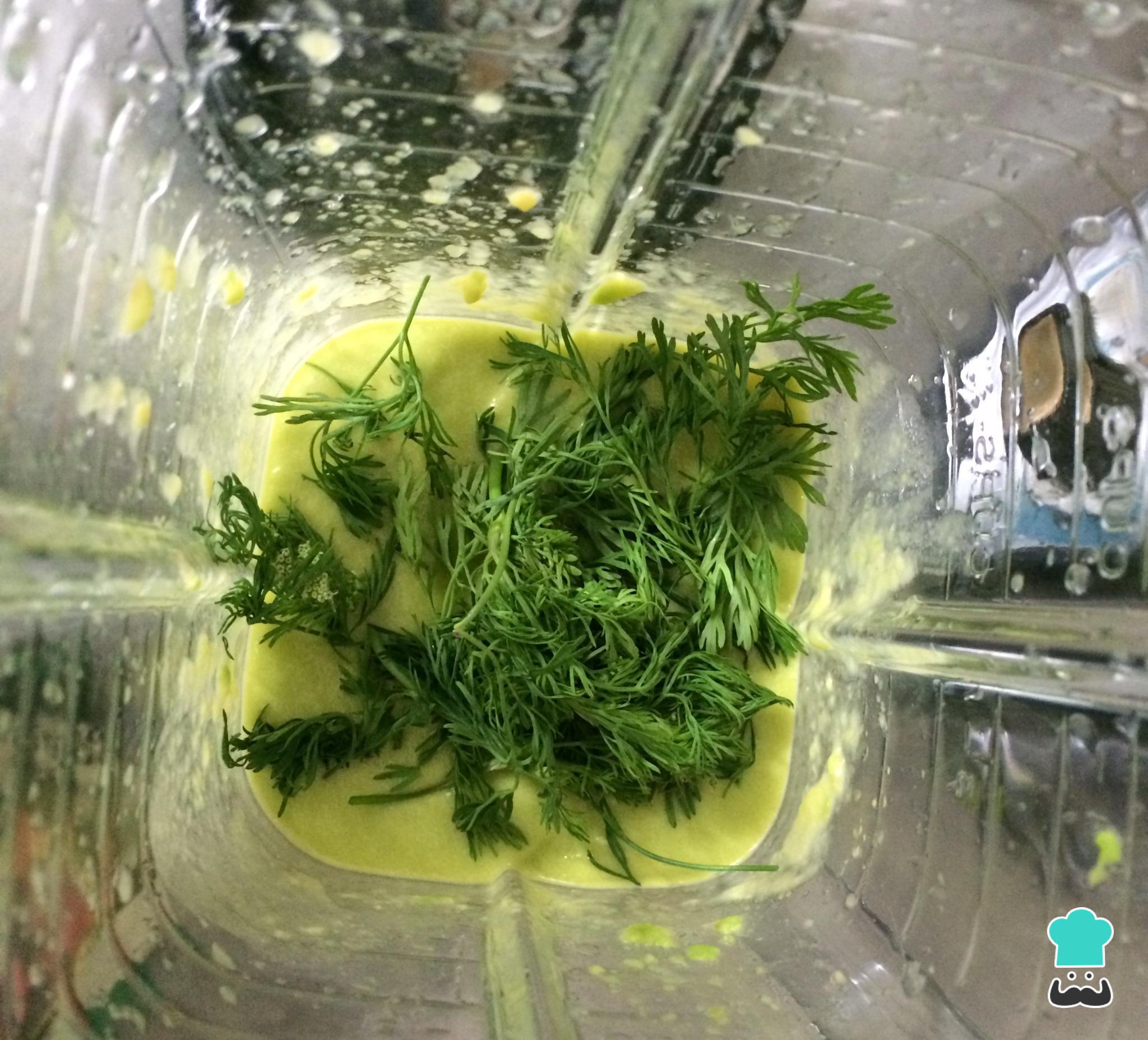 Adicione o coentro e triture até obter uma mistura homogênea.
