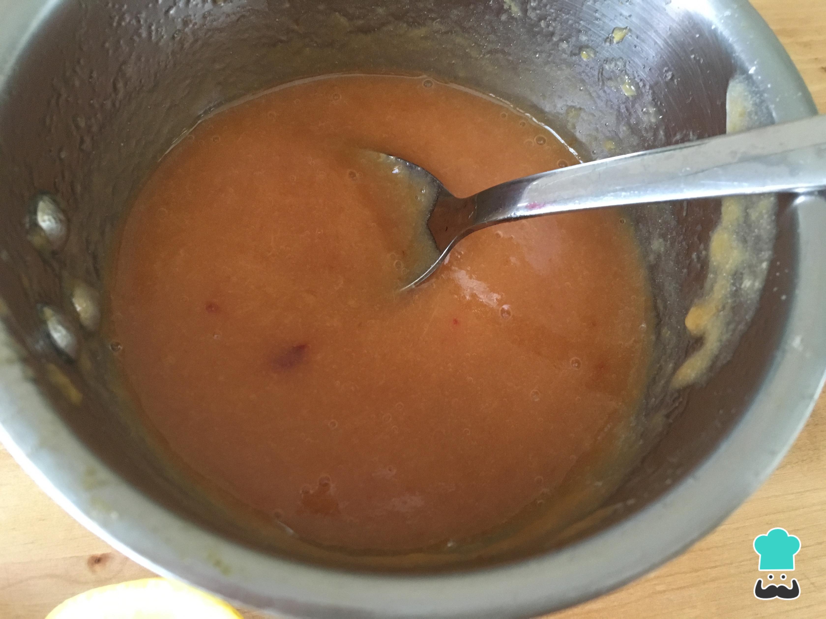 Após o passo anterior, bata o preparado no liquidificador ou com um mixer até ficar bem lisinho. Devolva ao fogo e deixe ferver até ficar mais espesso.