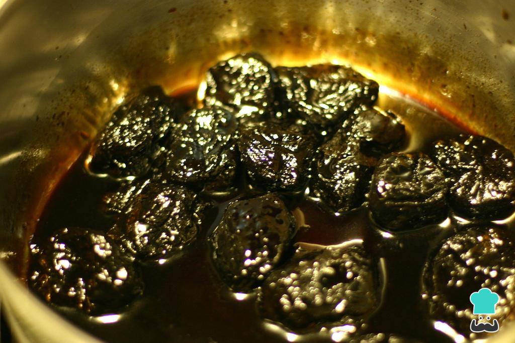 Para um saboroso molho de ameixas para peru recomendamos que coloque as ameixas hidratando até ficarem macias. Para isso coloque-as numa tigela, cubra com o vinho tinto e reserve durante a noite.