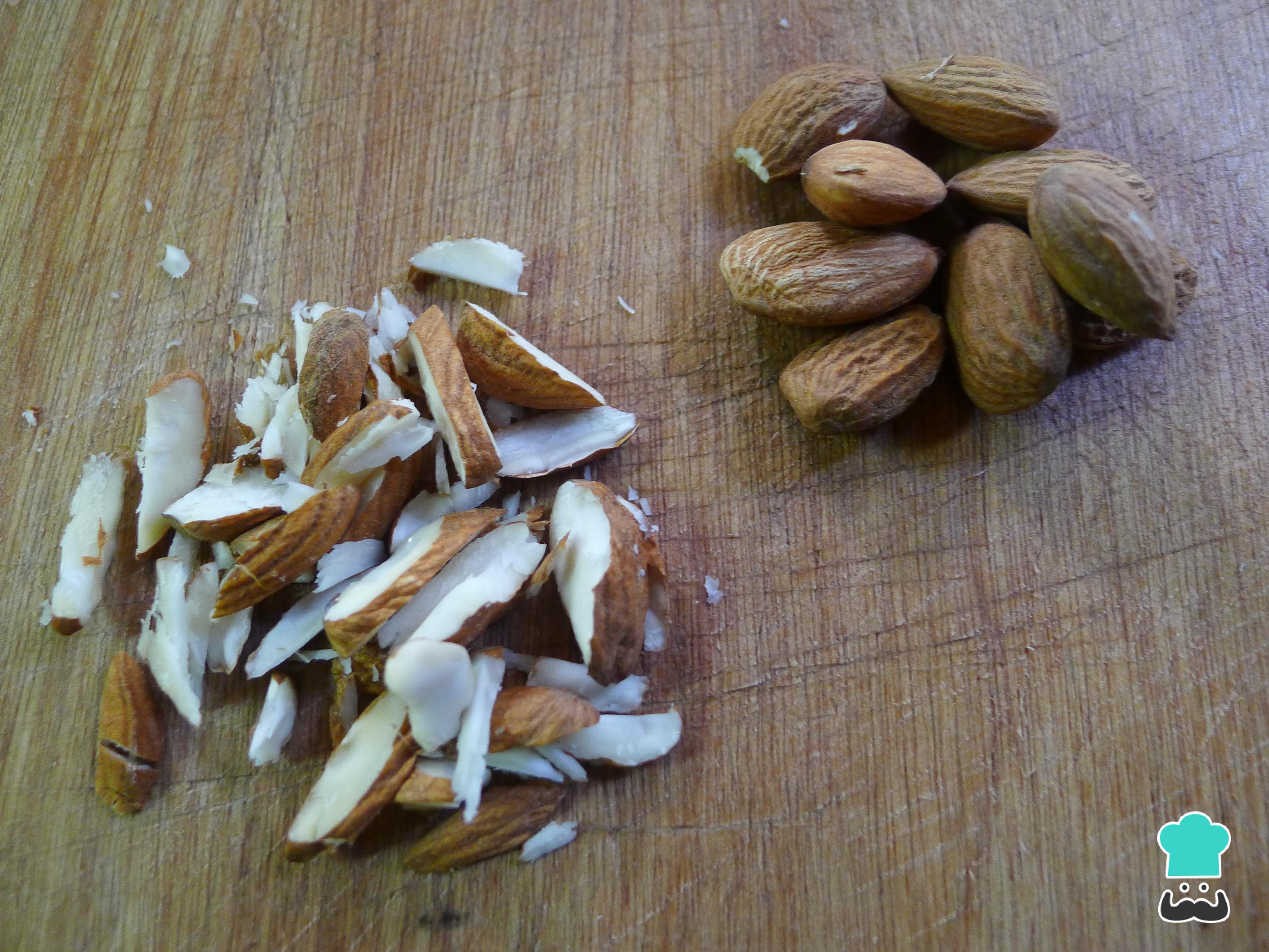 Por outro lado, corte as amêndoas em lâminas ou pique finamente, como preferir.