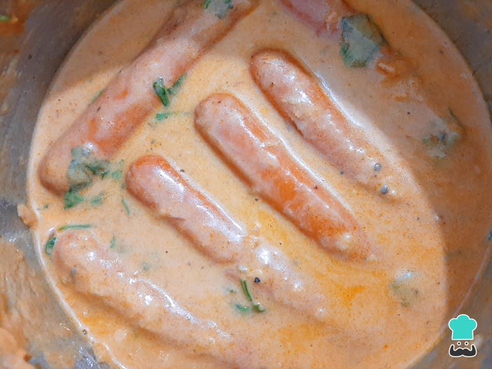Dica: é importante desligar o fogo antes de adicionar o creme de leite para evitar que ele fique talhado nesse molho de cachorro quente cremoso.