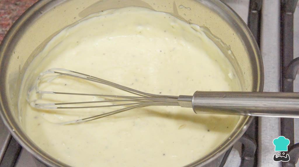 O molho de Catupiry caseiro estará pronto quando engrossar! Use no preparo de receitas de camarão (como a Coxinha de mandioca com camarão e Catupiry), macarrão, legumes ou outra. Bom apetite!