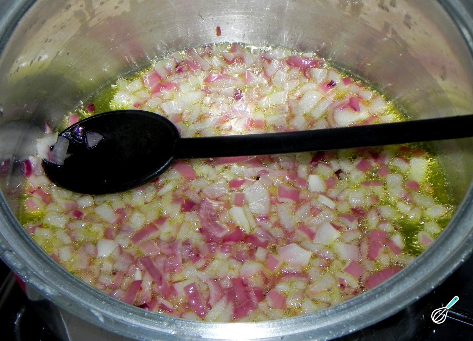 Para preparar esta receita de molho de cebola agridoce comece por refogar a cebola ralada ou picada numa panela em fogo médio com o óleo/azeite.
