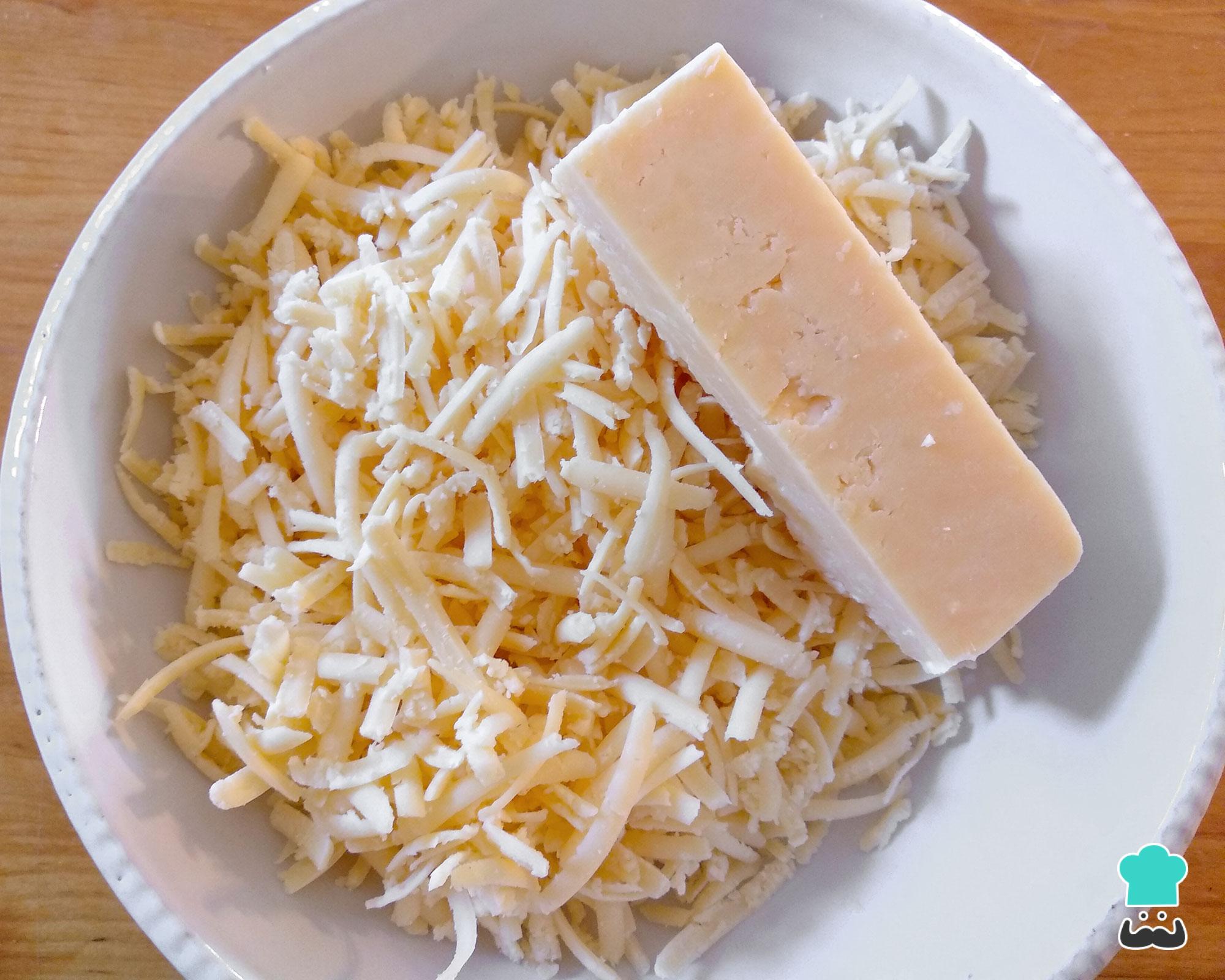 Primeiramente rale o queijo cheddar até obter aproximadamente 1 xícara de queijo cheddar ralado.