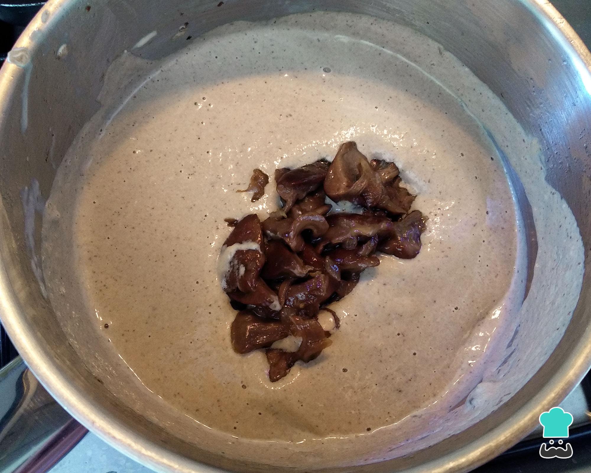 Reserve os cogumelos retirados e bata o conteúdo da panela no liquidificador, num processador ou com um mixer de mãos até conseguir um molho de cogumelos lisinho.