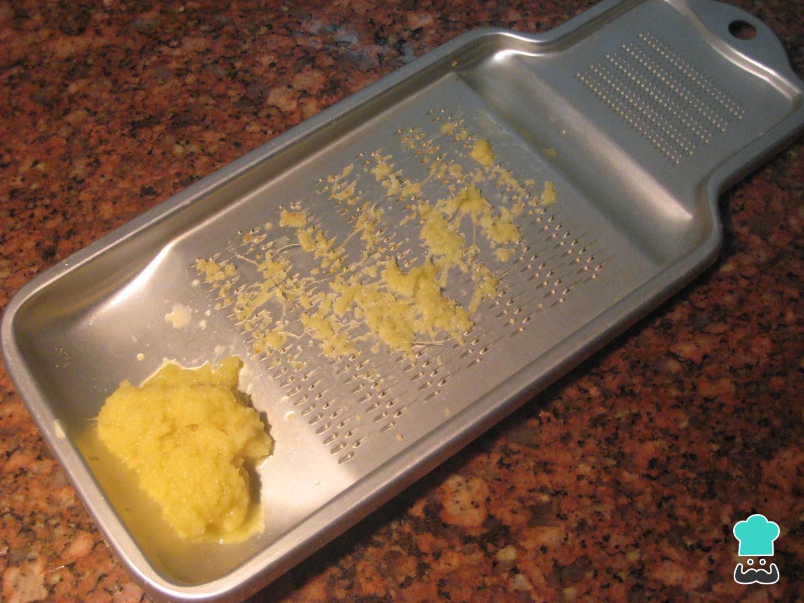 Preparar este molho de gengibre é muito fácil! Comece por ralar o gengibre.