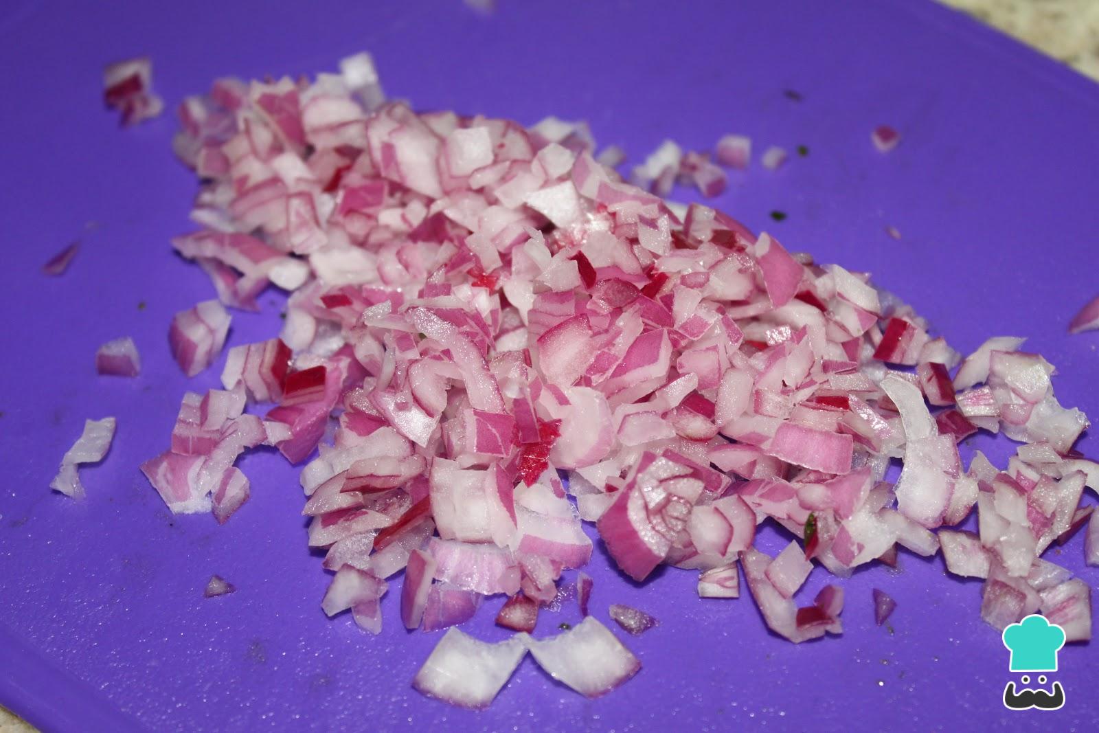 Rale também a cebola, de modo que fique bem fininha. Caso prefira, pode picá-la com uma faca.