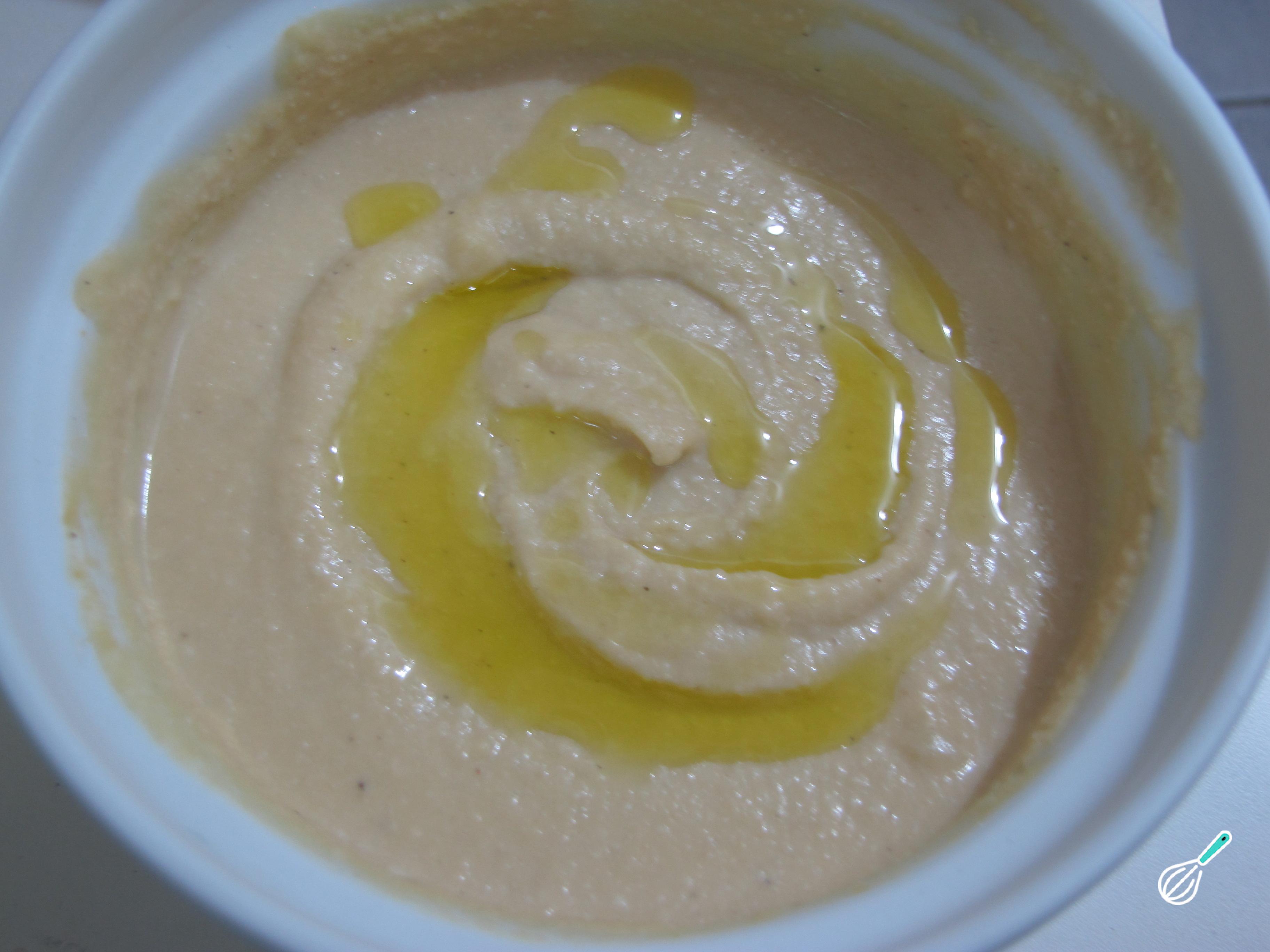 Bata todos os ingredientes no liquidificador ou com um mixer até obter um creme. Prove, retifique o sal se necessário e, se a consistência estiver muito grossa, adicione um pouco mais de água.