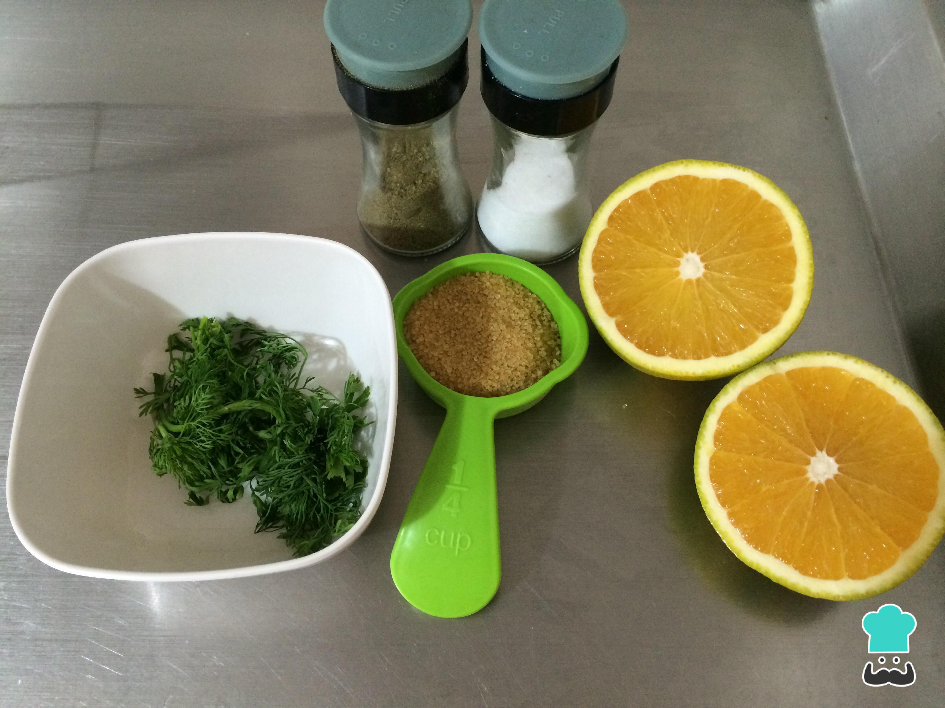 Para preparar este molho de laranja comece por reunir todos os ingredientes.