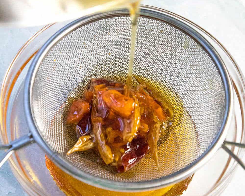 Dica: Você pode jogar fora as pimentas ou degustá-las, pois agora elas estão cristalizadas com mel.